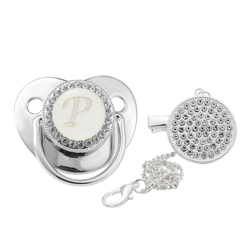 Children's Silver Soothing Pacifier Baby Letters A-Z
