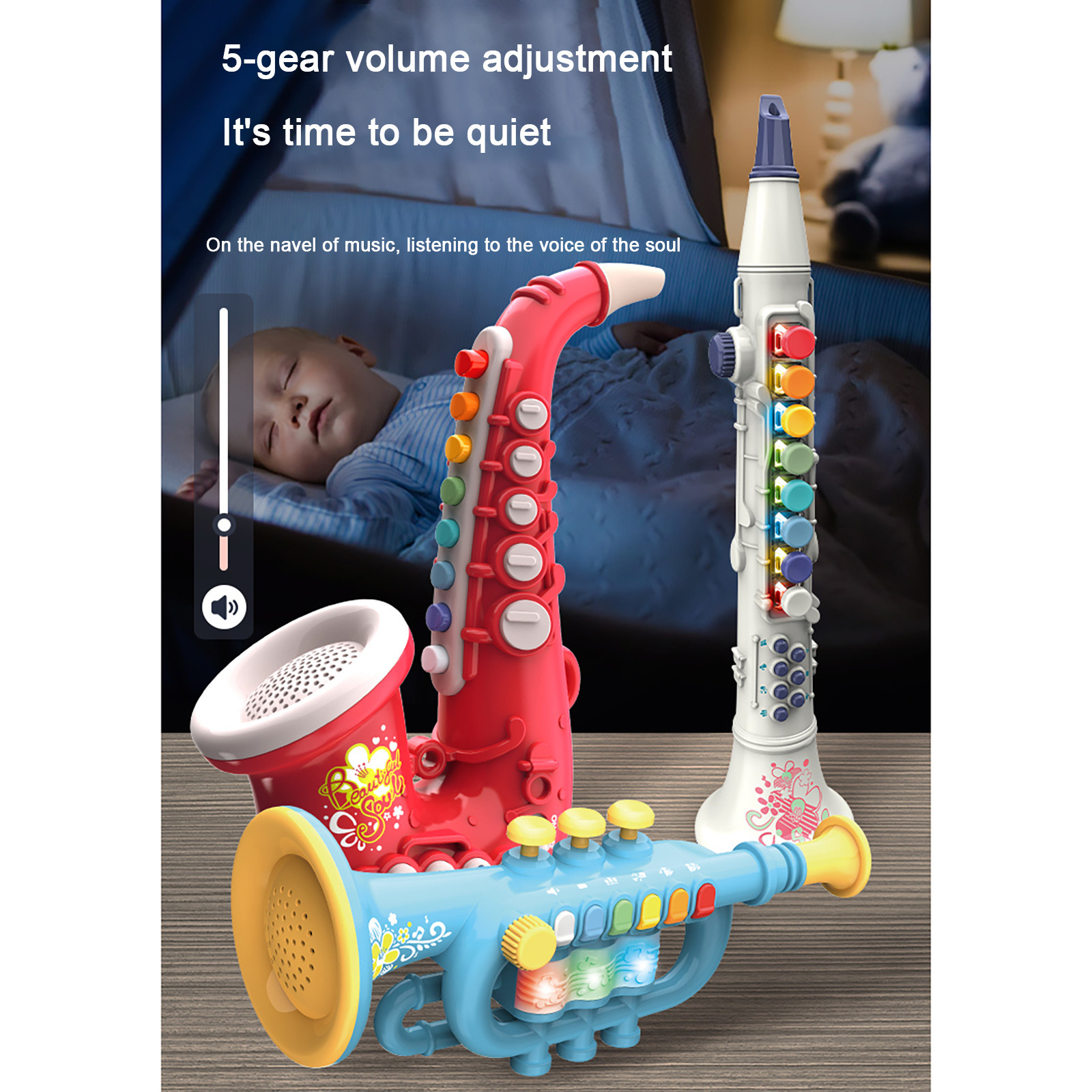 2. The sound quality is clear and unambiguous, and it also has 5 levels of adjustable volume. It can also be played at a low volume to help children sleep. The baby’s favorite colorful colors are used, and there are 6 levels of light. Pause at any time during playback.