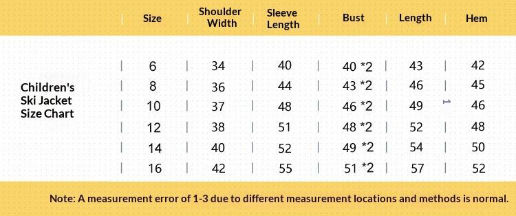 Size: 6(115cm),8(125cm),10(135cm),12(145cm),14(155cm)