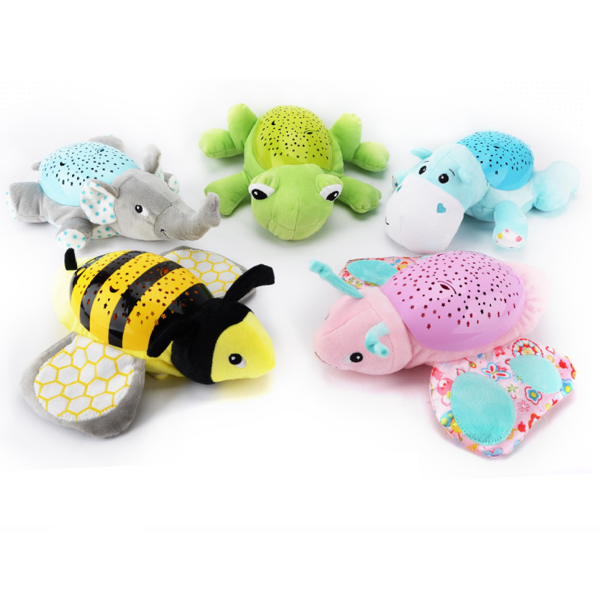 Color: Hippo appease light, butterfly appease light, frog appease light, turtle appease light, bee appease light, blue elephant appease light, gray elephant appease light