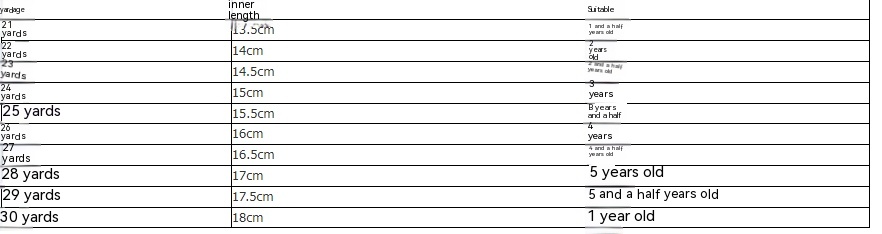 Size: 21, 22, 23, 24, 25,26, 27, 28, 29, 30 yards