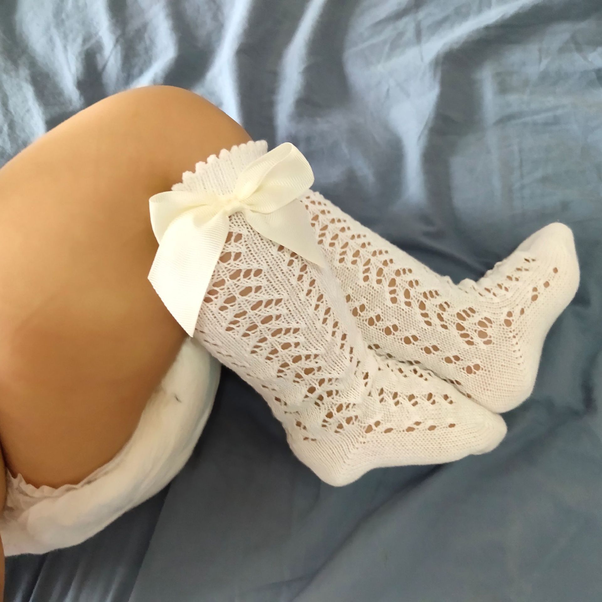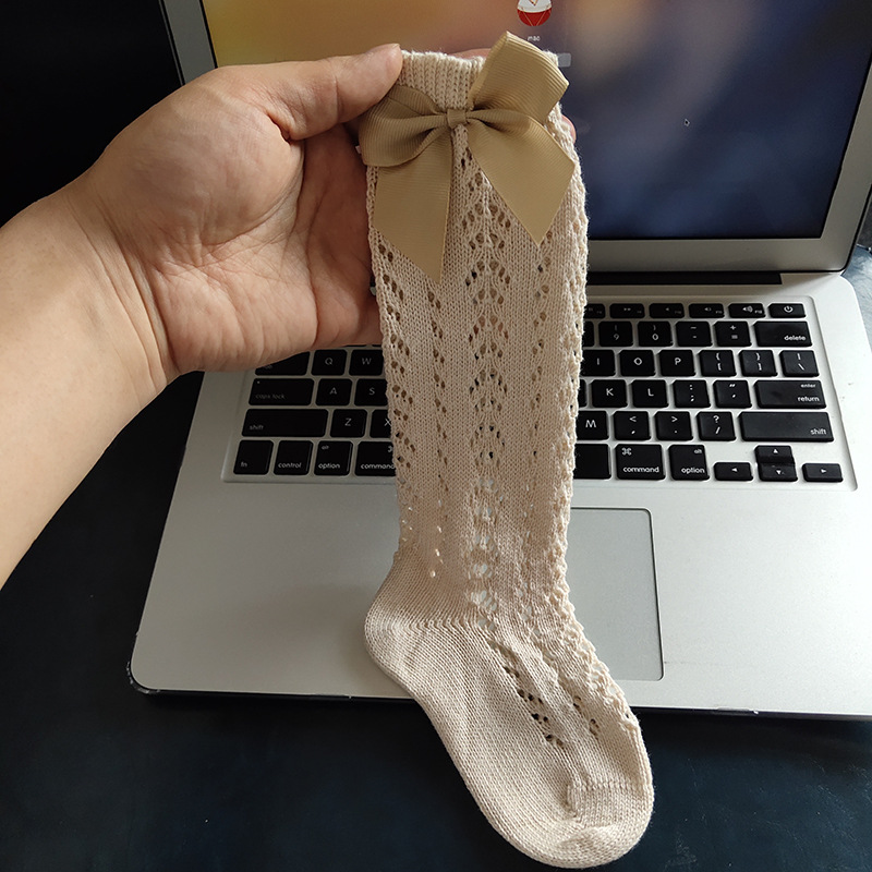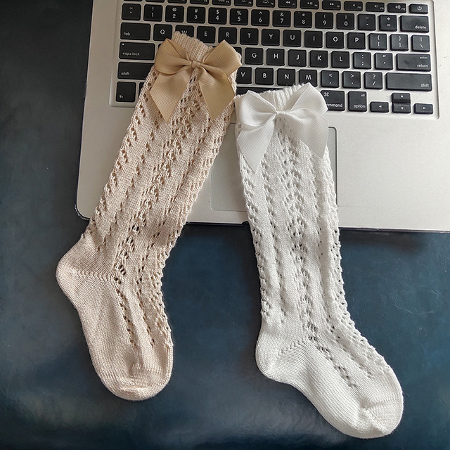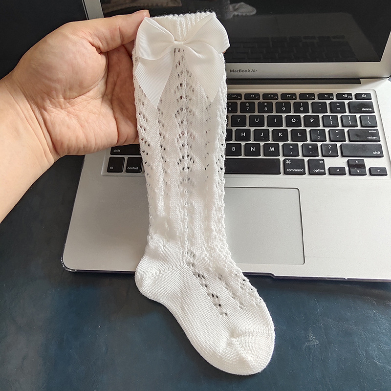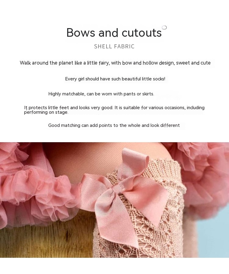 Children's Solid Color Mesh Bow Mid Length Socks With Removable Loops