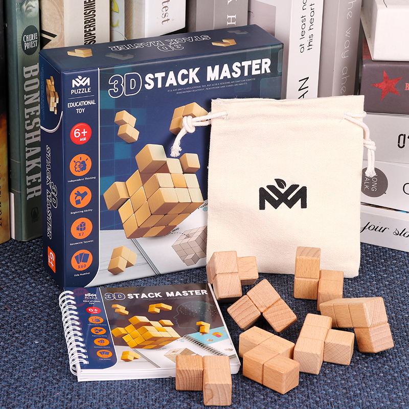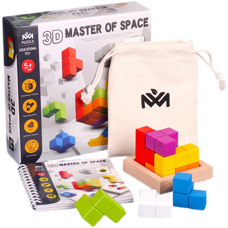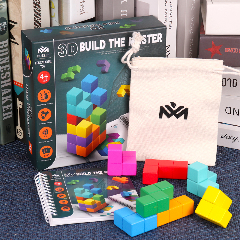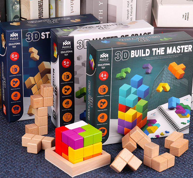 The 3D construction master contains 100 preliminary questions, the 3D space master contains 60 intermediate questions, and the 3D stacking master contains 60 advanced questions.
