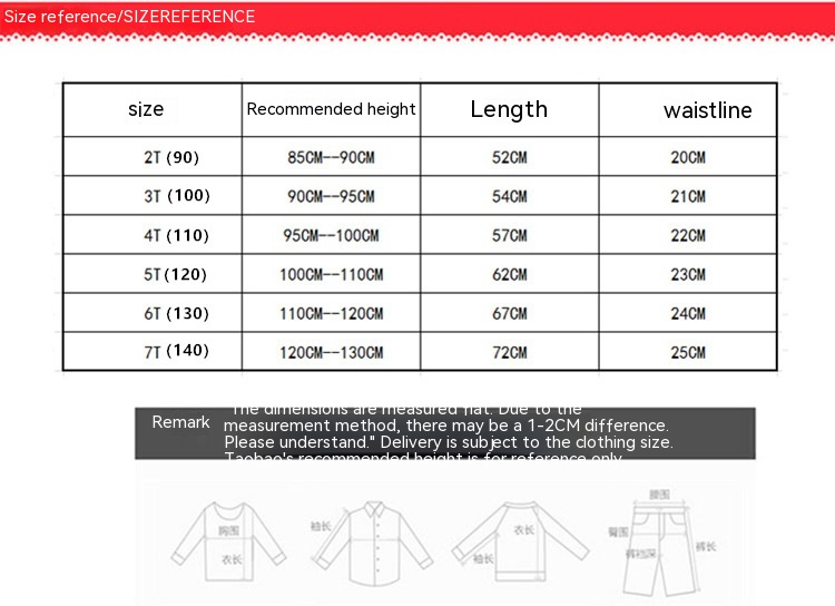 Suitable height: 2T (90cm),3T (100cm),4T (110cm),5t (120cm),6T (130cm),7T(140cm)