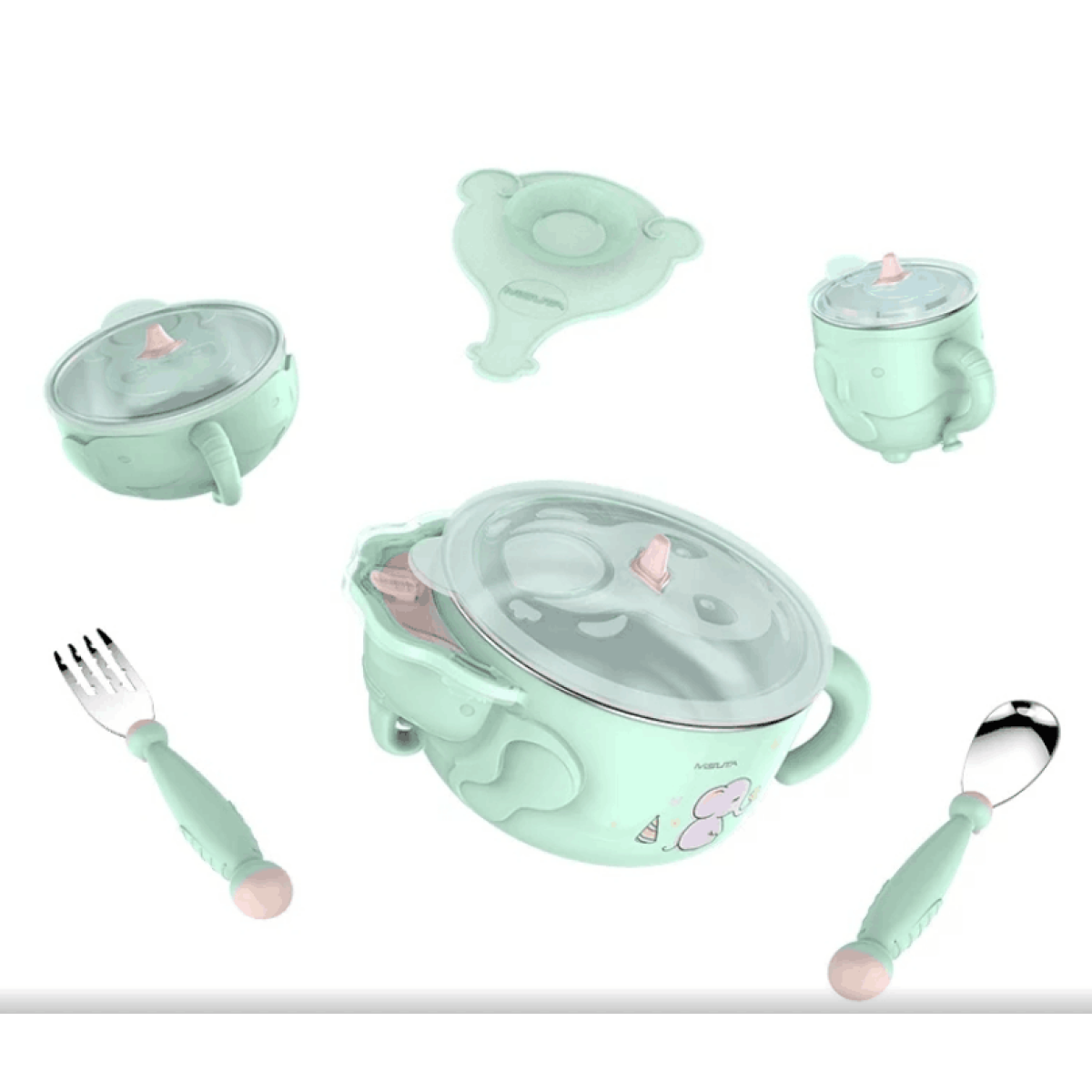 Children's stainless steel cutlery set baby sucker anti-fall bowl complementary food bowl spoon baby water injection insulation bowl