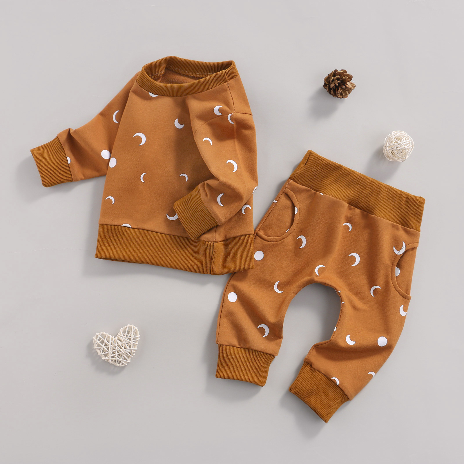 Children's Sun Moon Print Long Sleeve Trousers Romper Suit