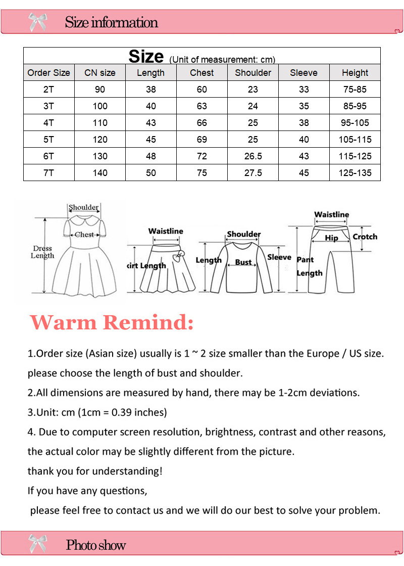 2. Please check the size chart carefully before you buy the item, if you don't know how to choose size, please contact our customer service.