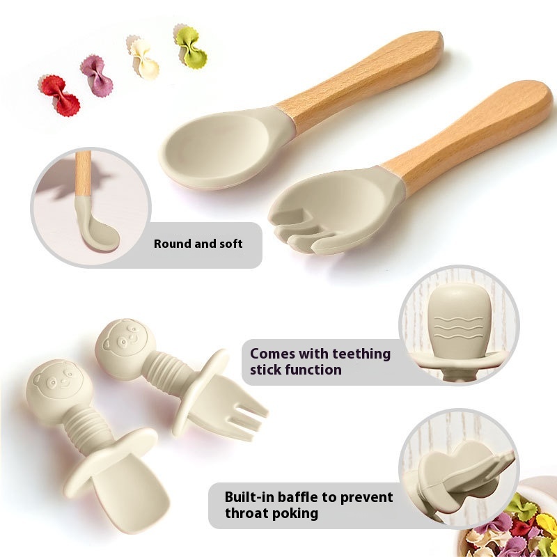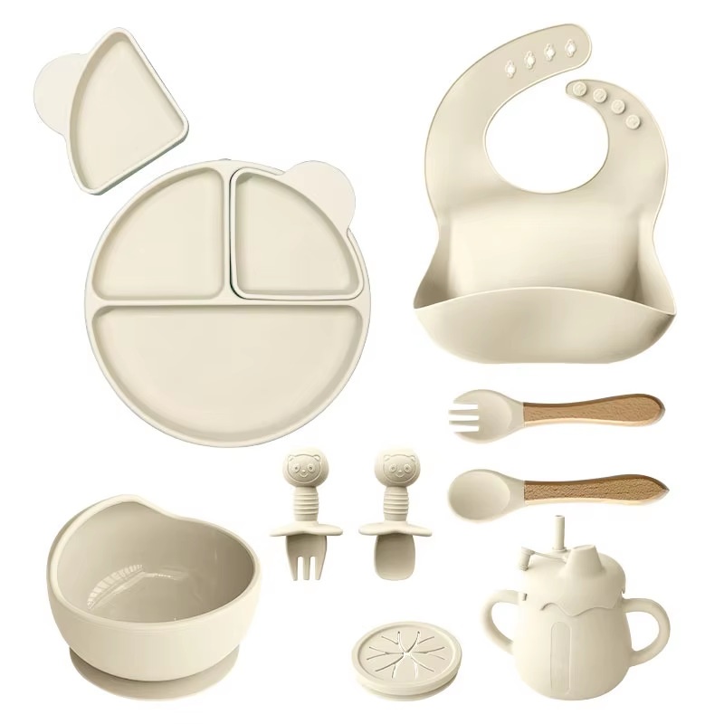 Children's Tableware Set Edible Silicon Plate Spork Bib Infant Solid Food Tools 11-piece Set