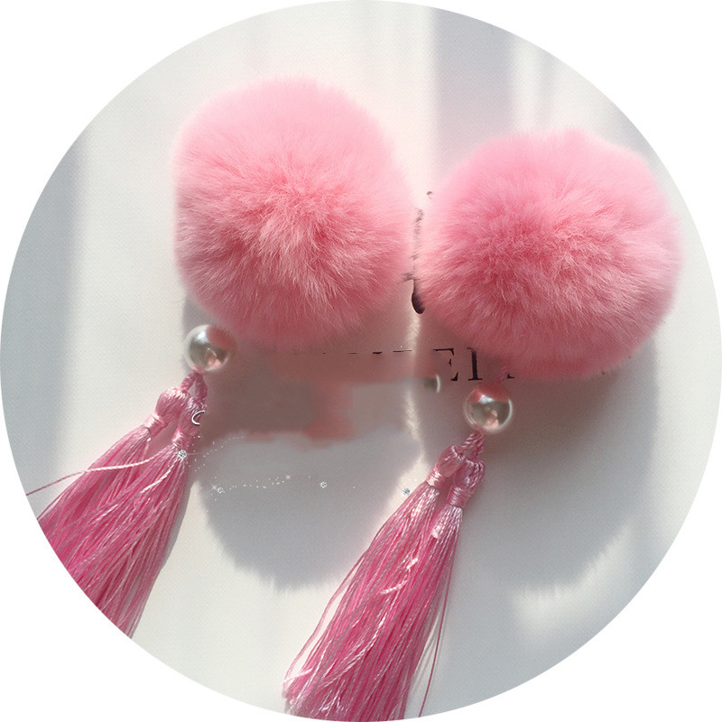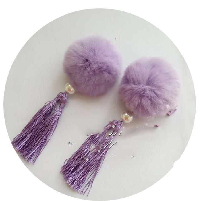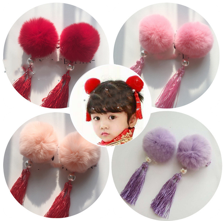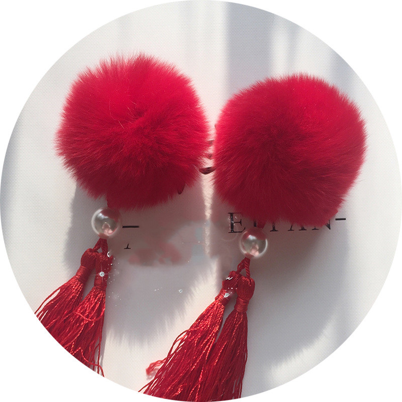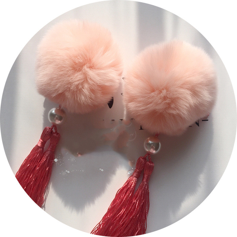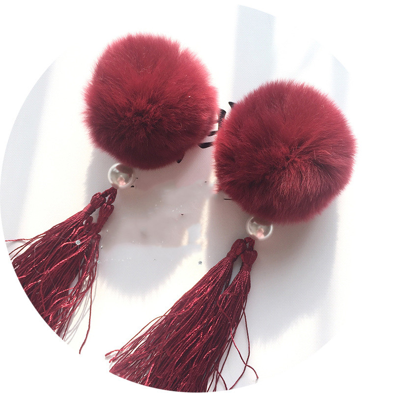 Color: 1 pink rabbit fur ball, 1 orange rabbit fur ball, 1 purple rabbit fur ball, 1 red rabbit fur ball, 1 wine red rabbit fur ball