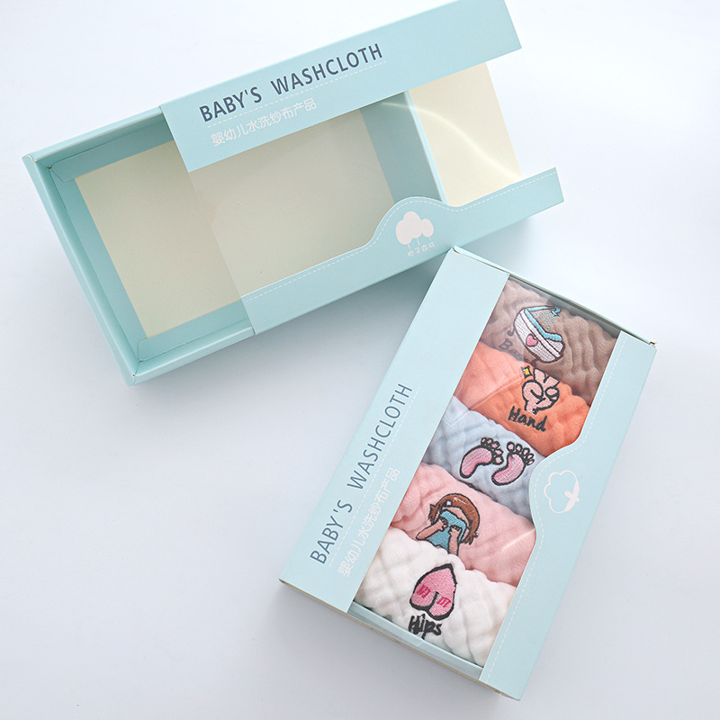 J: 3 packs of white embroidered square scarf bags (washing face + washing butt + bathing),