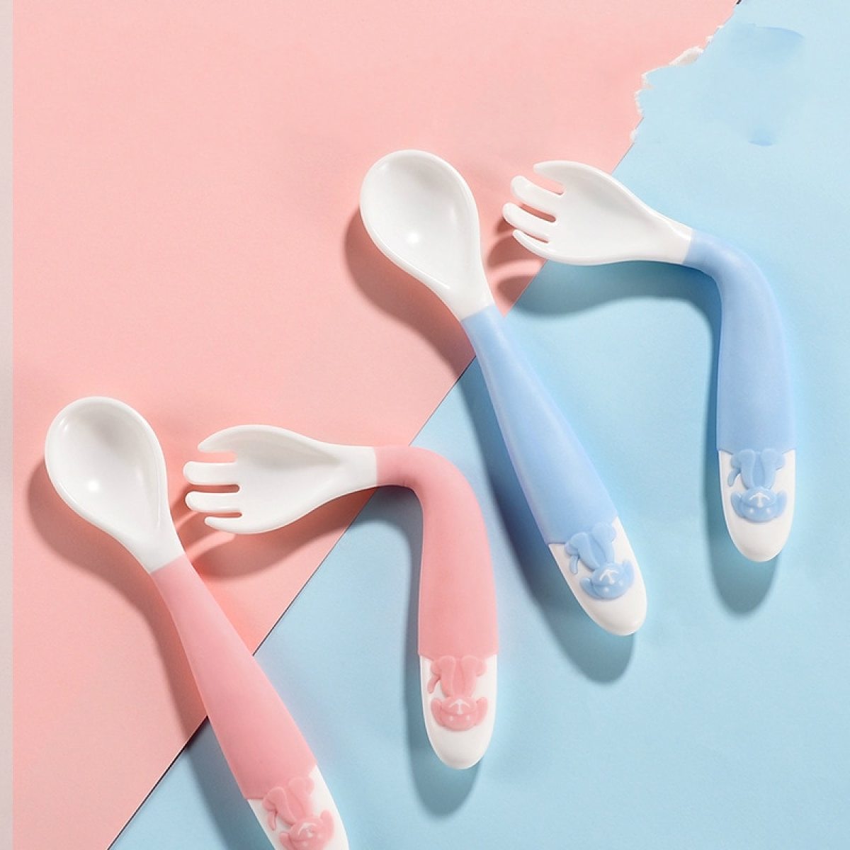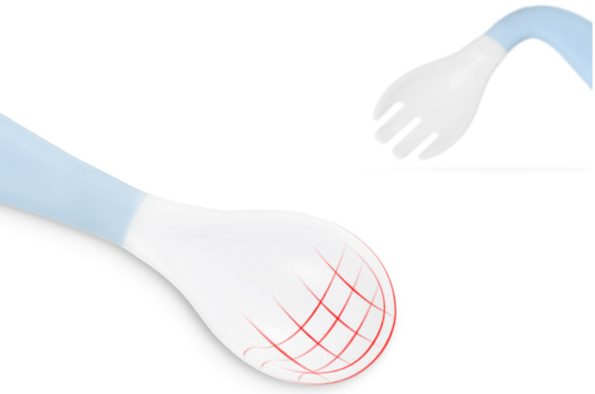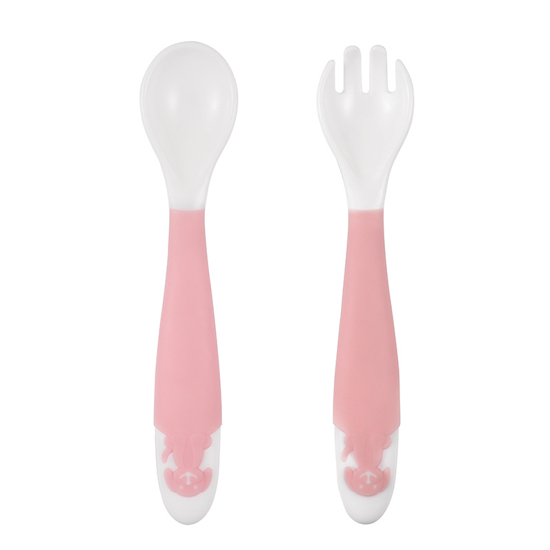 Material: polypropylene (pp)Applicable age: more than 3 monthsColor: blue spoon + fork, pink spoon + fork