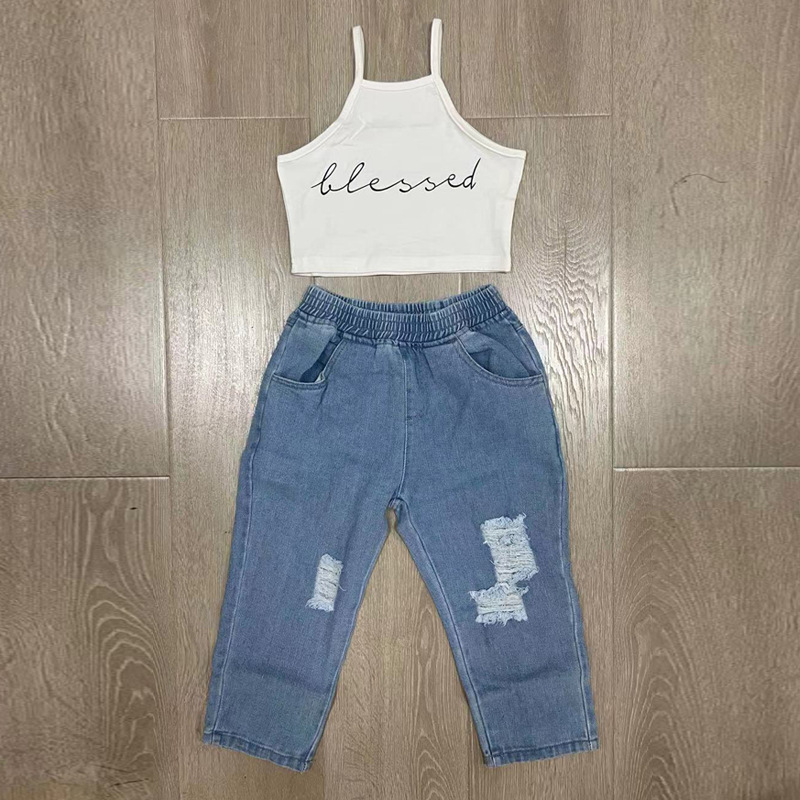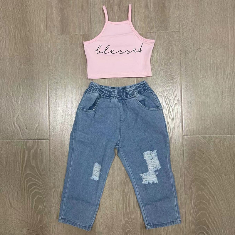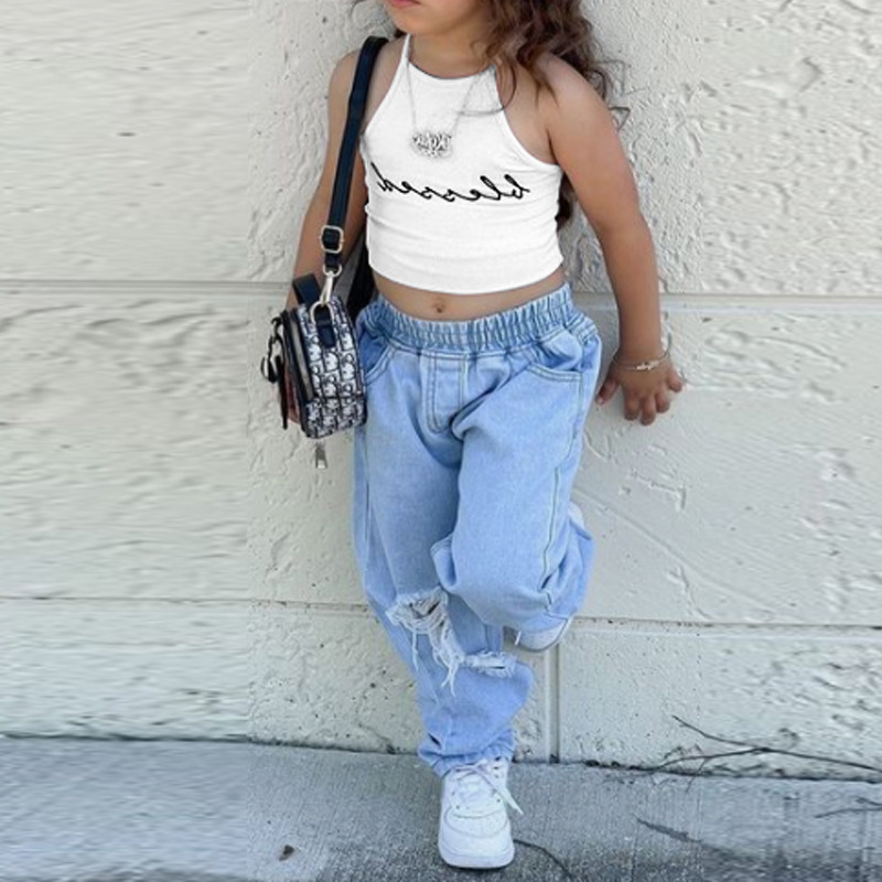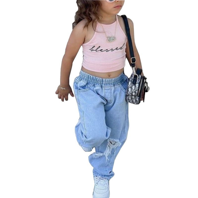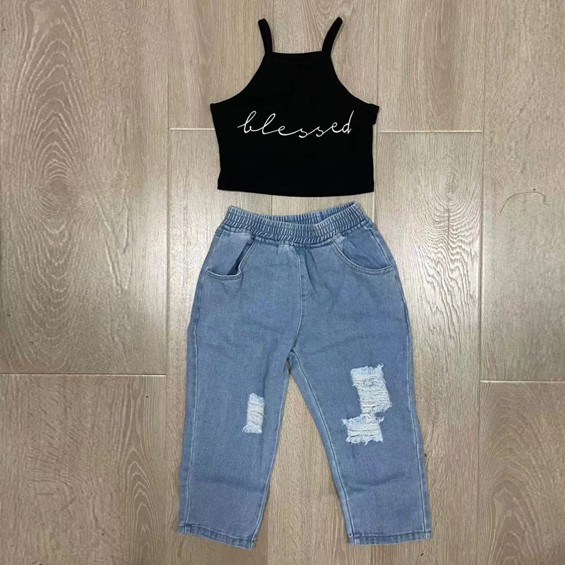 Children's two-piece suit with holes in vests, tops and jeans*1