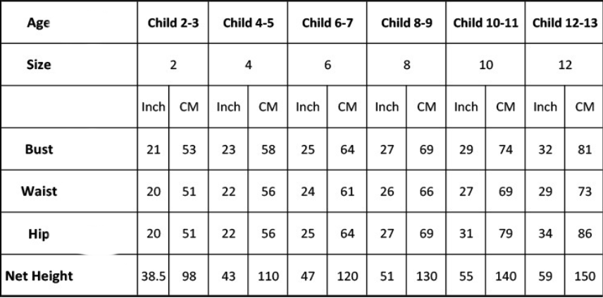 Suitable height: 2-3 (98cm), 4-5 (110cm), 6-7 (120cm), 8-9 (130cm), 10-11 (140cm), 12-13 (150cm)