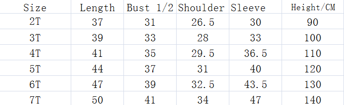 Suitable height: 2T(90), 3T(100), 4T(110), 5T(120), 6T(130), 7T(140)