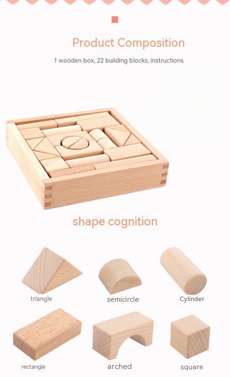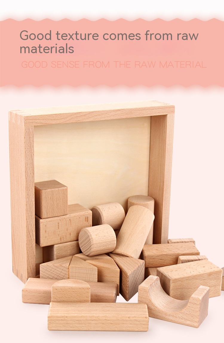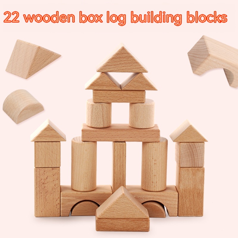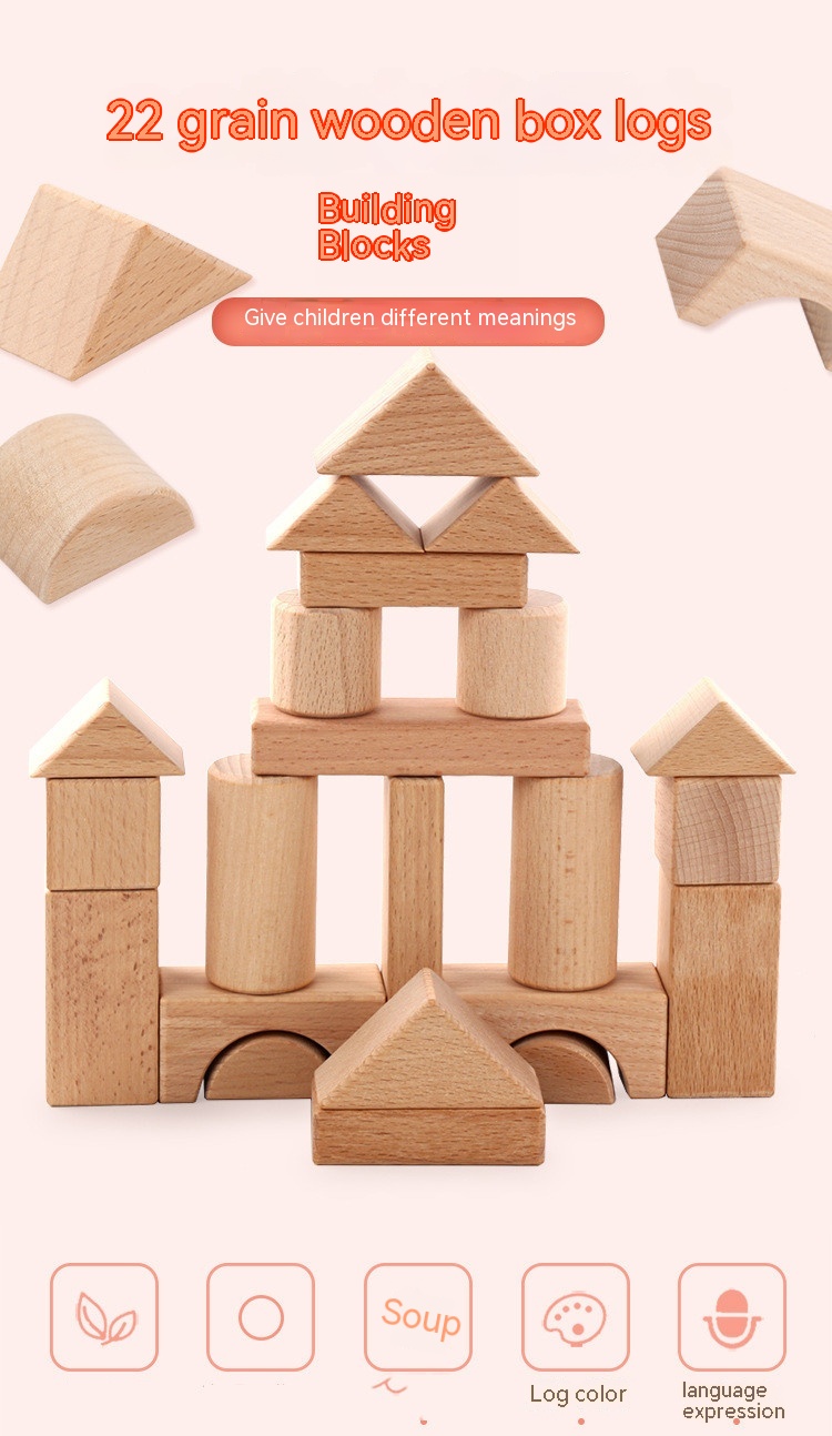 Children's Wooden Wood Box Beech 22 Logs Biteable Assembled Building Blocks Early Education Educational Toys