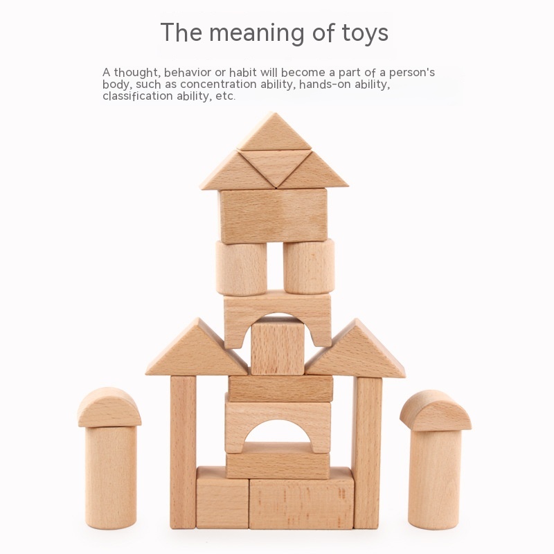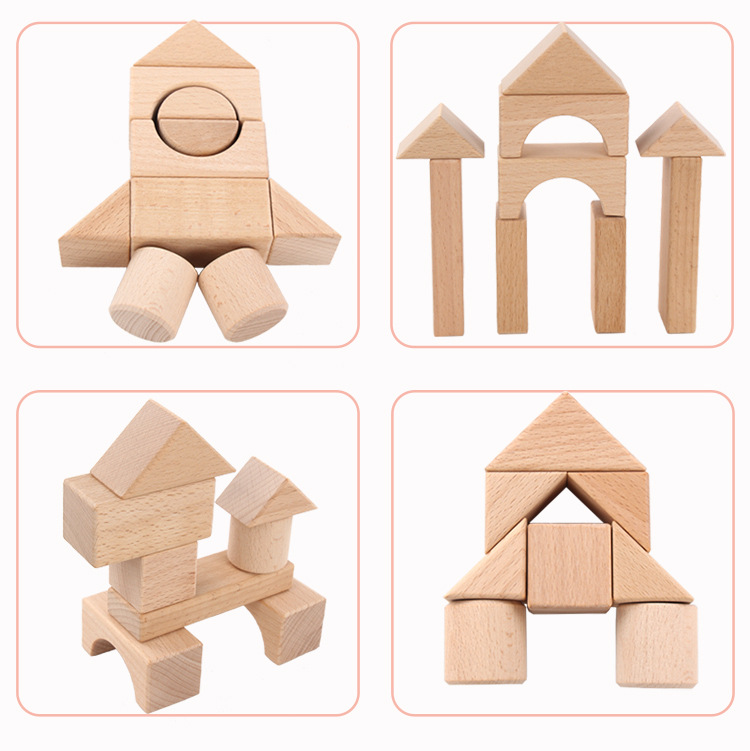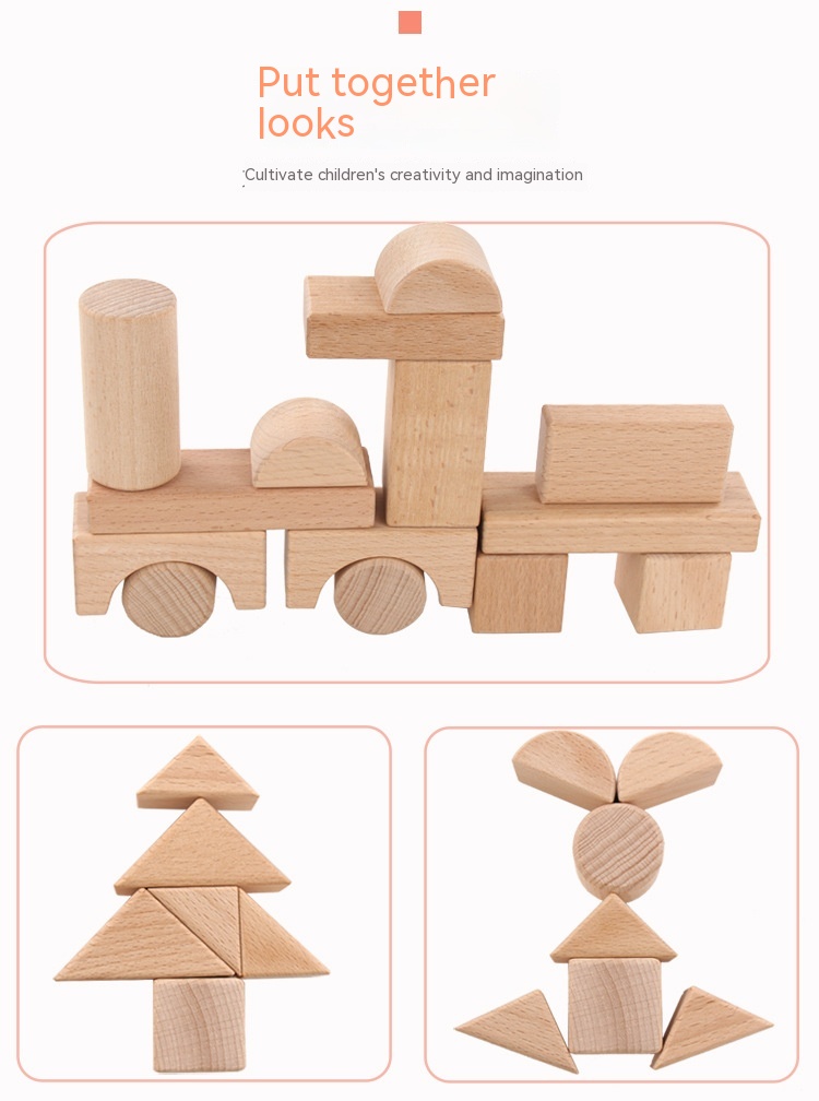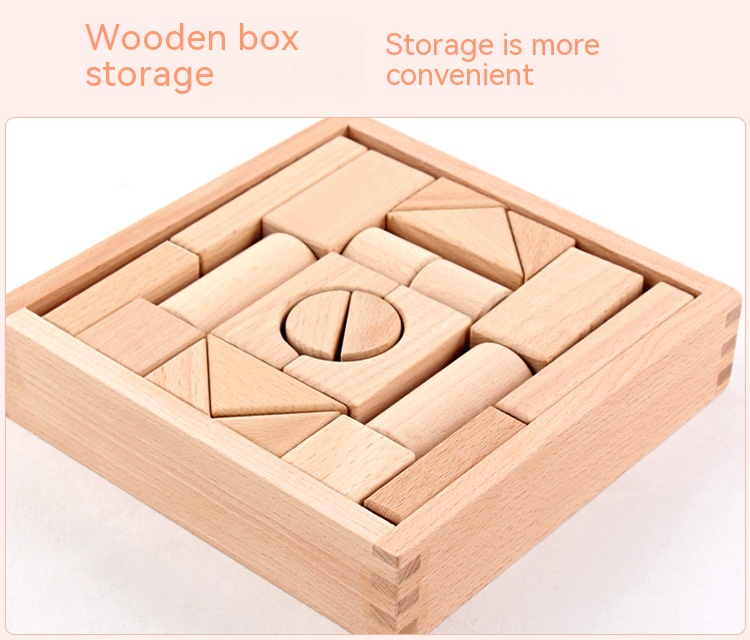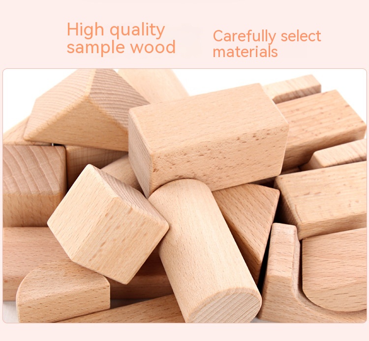 Children's Wooden Wood Box Beech 22 Logs Biteable Assembled Building Blocks Early Education Educational Toys