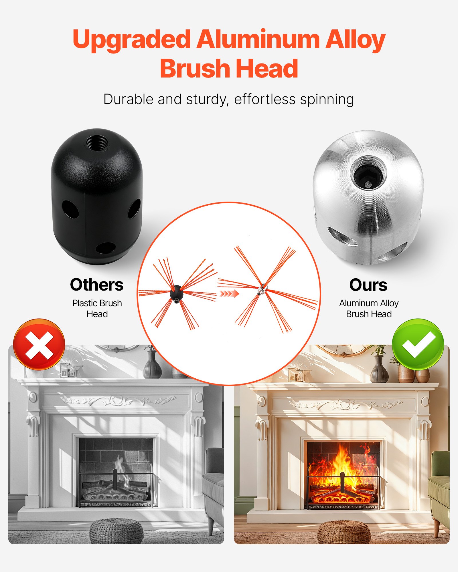 Durable & Efficient Brush: The upgraded aluminum alloy brush head in our chimney cleaning system offers enhanced durability and wear resistance. With strong nylon bristles and a sharp rectangular shape, it ensures efficient cleaning without damaging the chimney surface, making it ideal for regular use