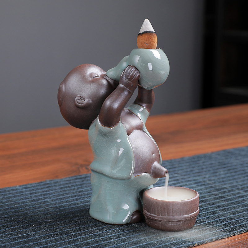 Chinese Backflow Incense Burner Ice Cracked Piece Boy Tea Pet Indoor Aromatherapy Decoration