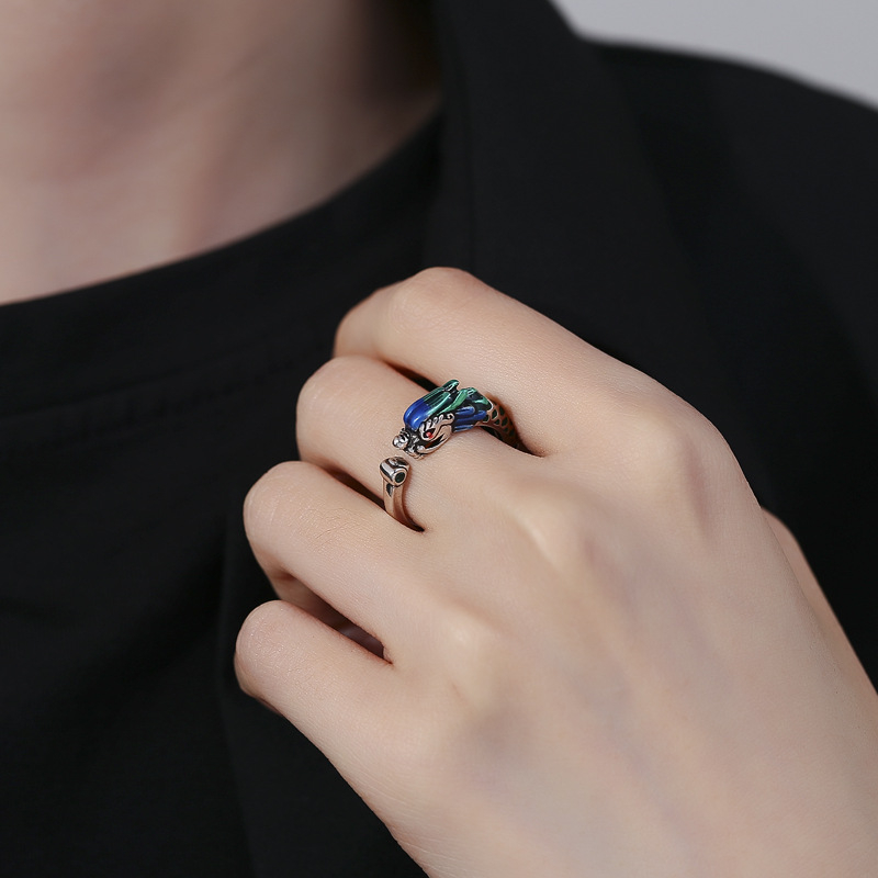 Color: HR703 enamel dragon ring, HR703 enamel Phoenix ring
