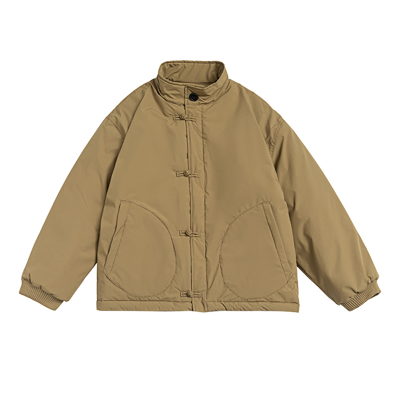 Chinese Retro Buckle Khaki Cotton-padded Loose Cotton Padded Jacket Coat