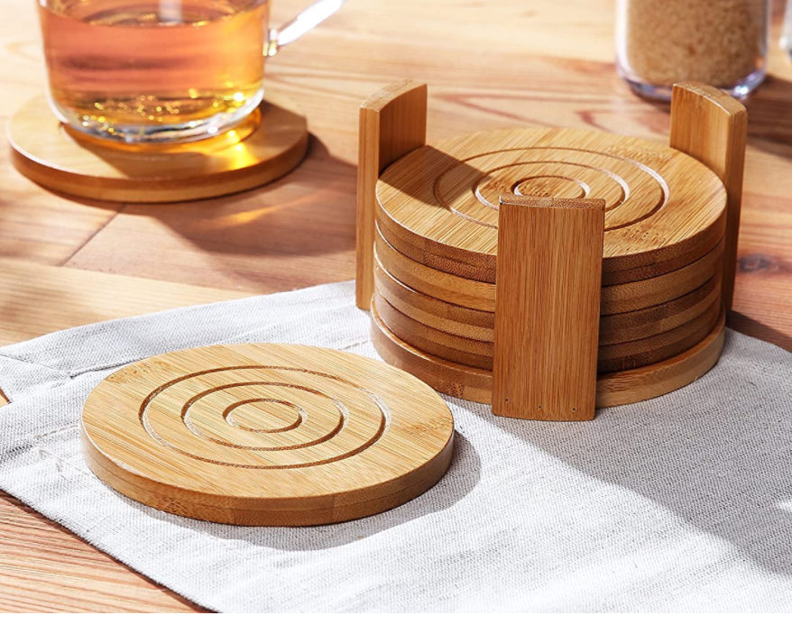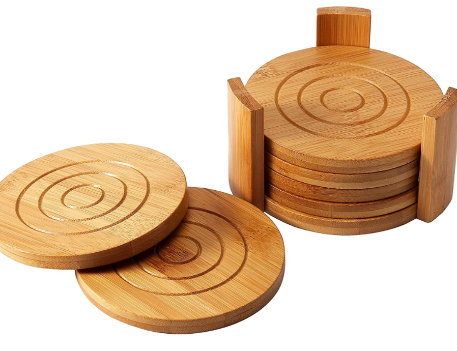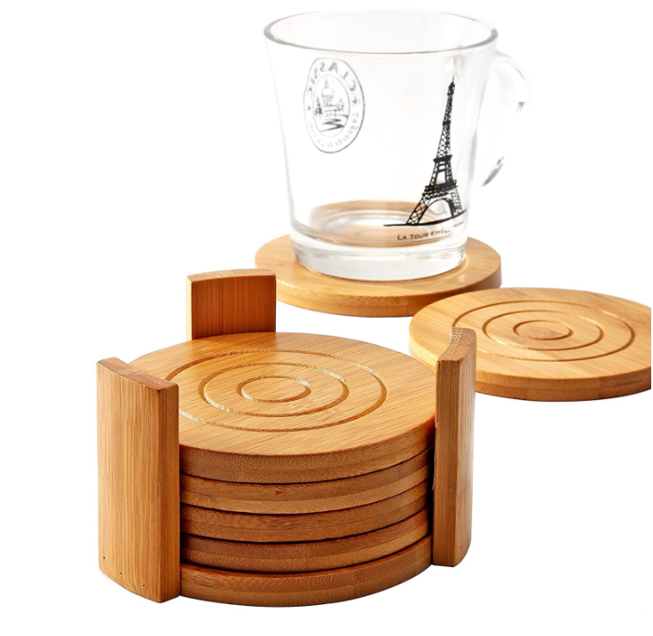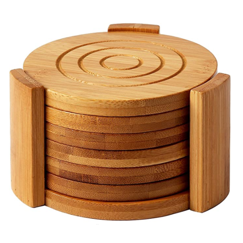 Coaster cover: Bamboo coaster cover with 6 coasters and customized bracket