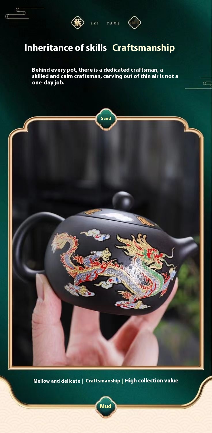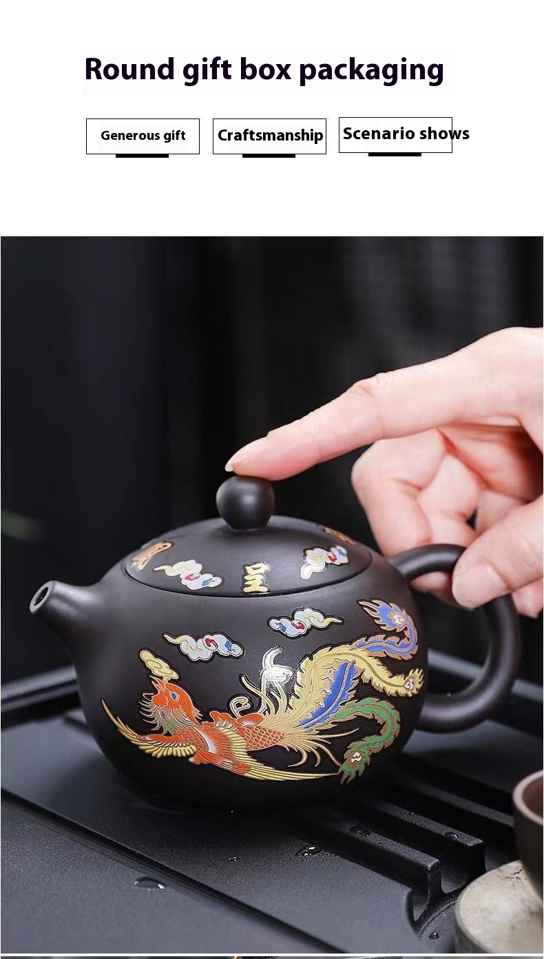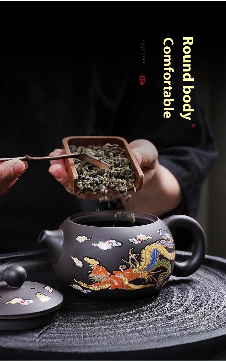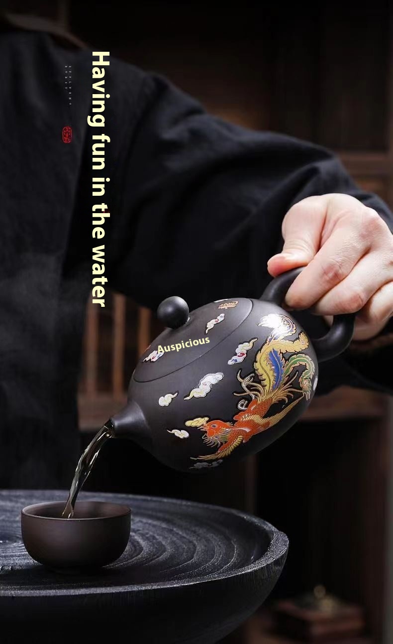 Chinese Style Hot Dragon And Phoenix Purple Sand Teapot