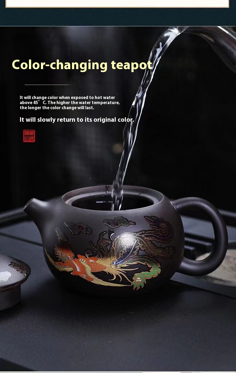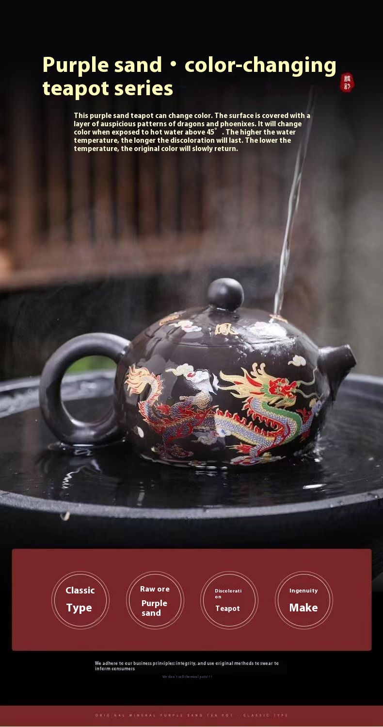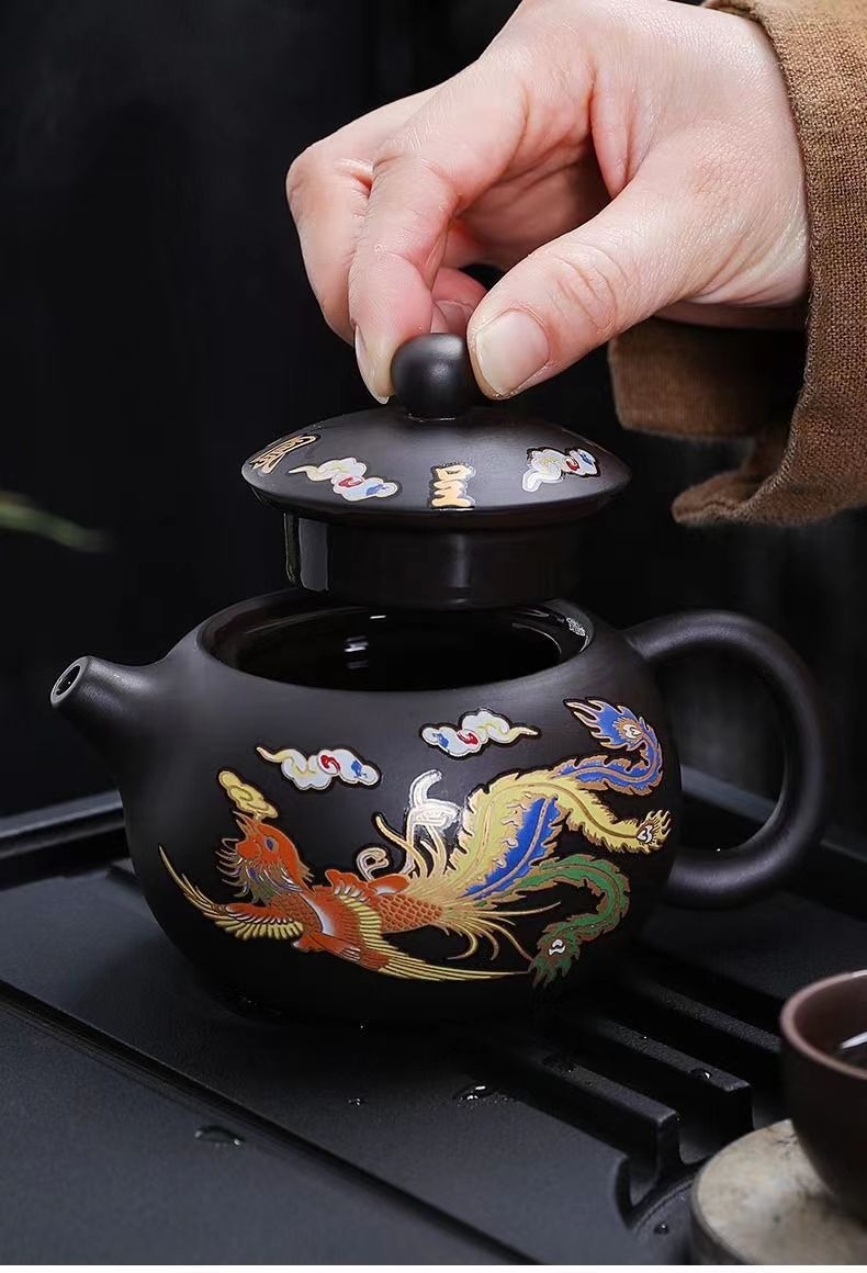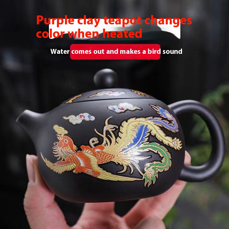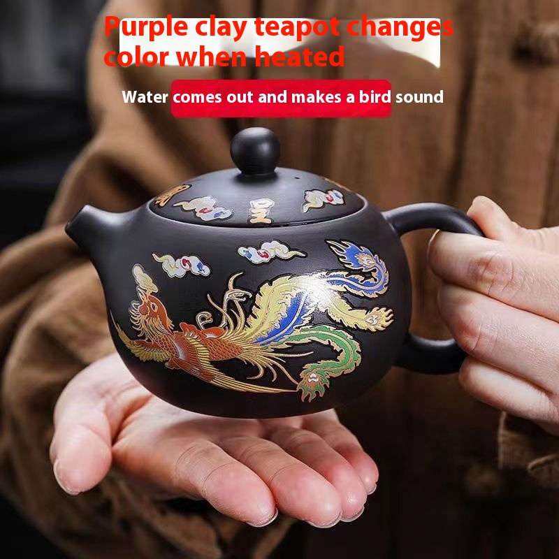 Chinese Style Hot Dragon And Phoenix Purple Sand Teapot