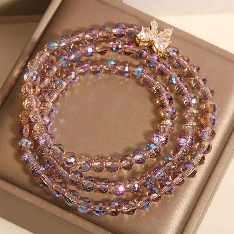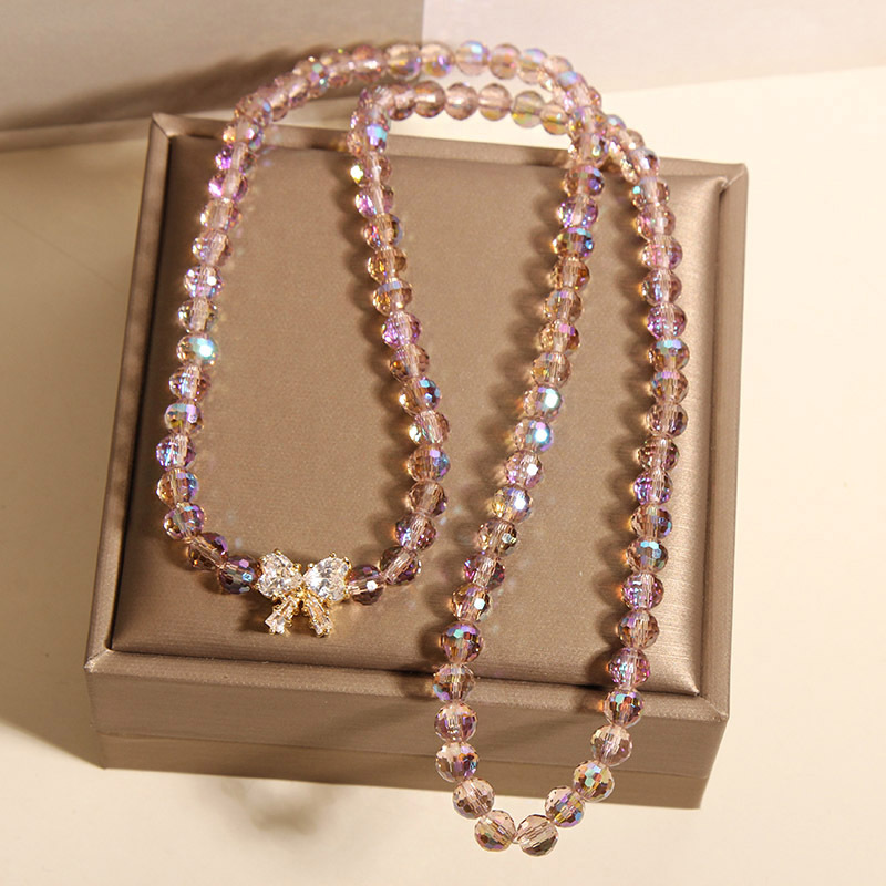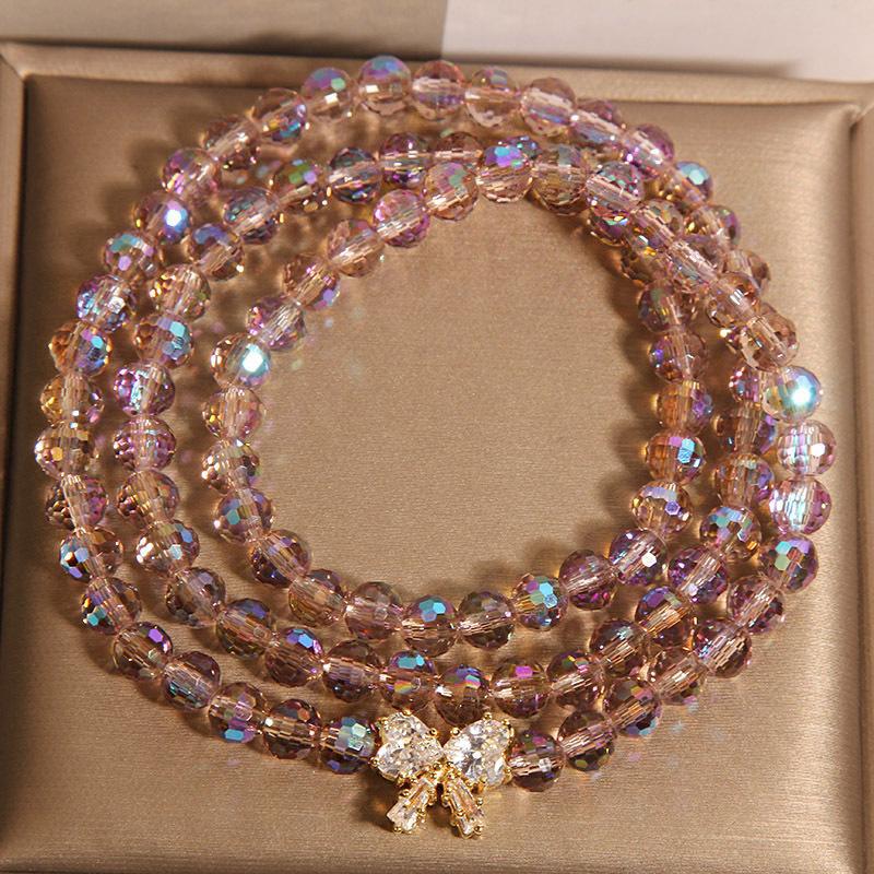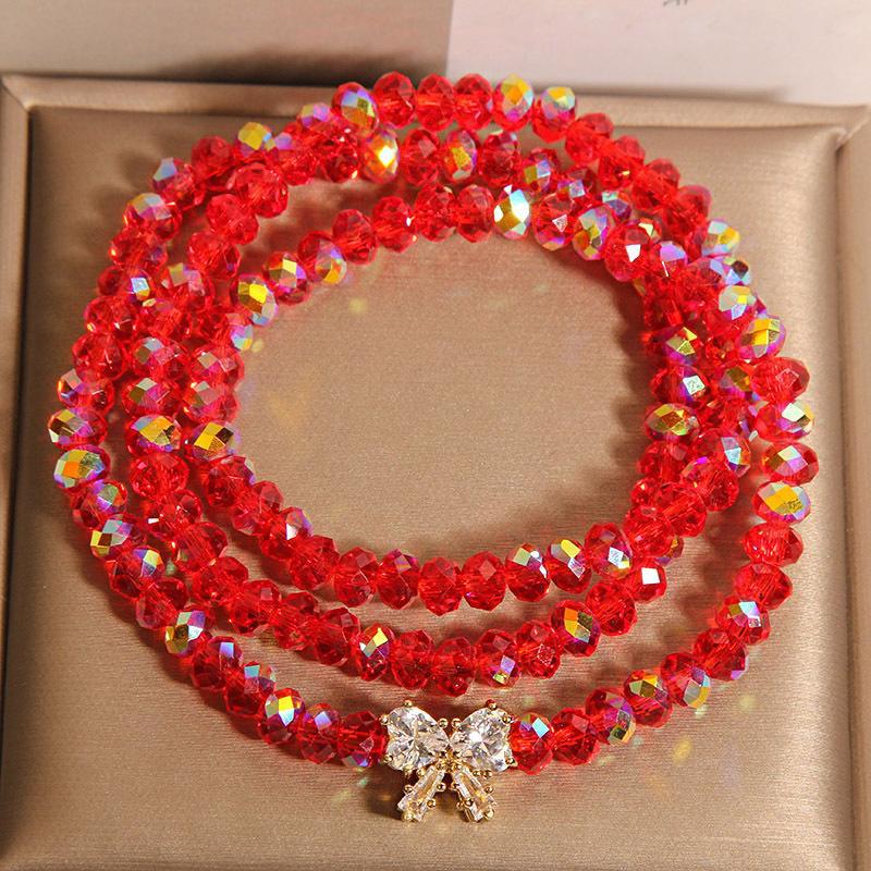 Color: 3 circles purple gray crystal bow, 3 circles red crystal bow