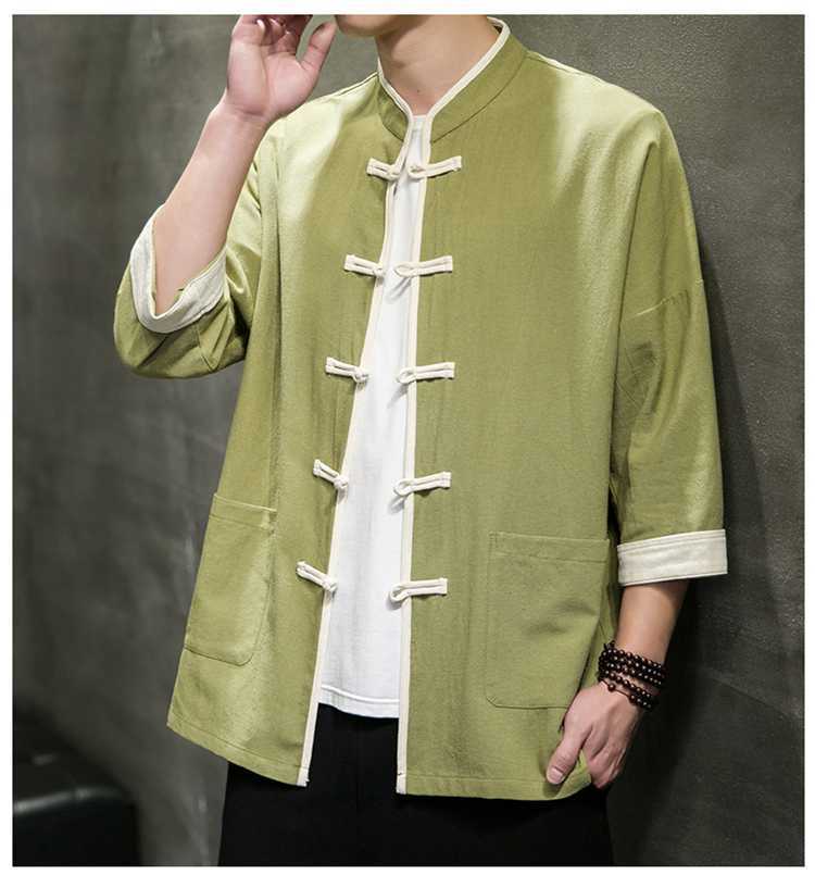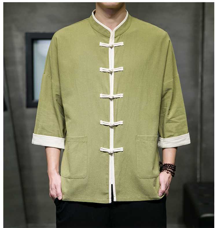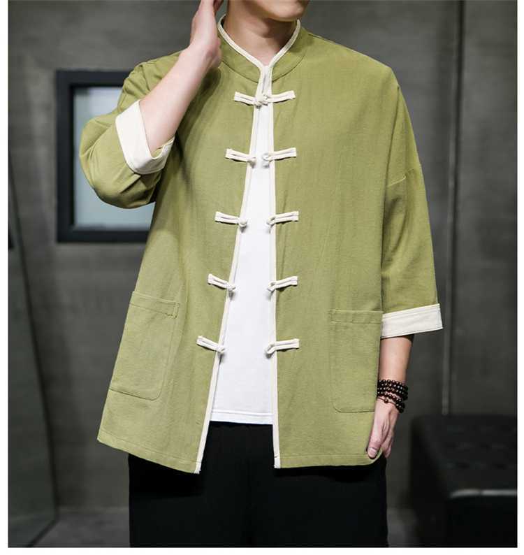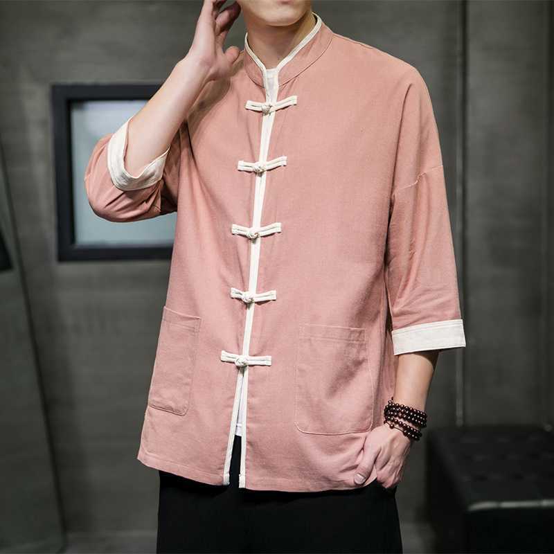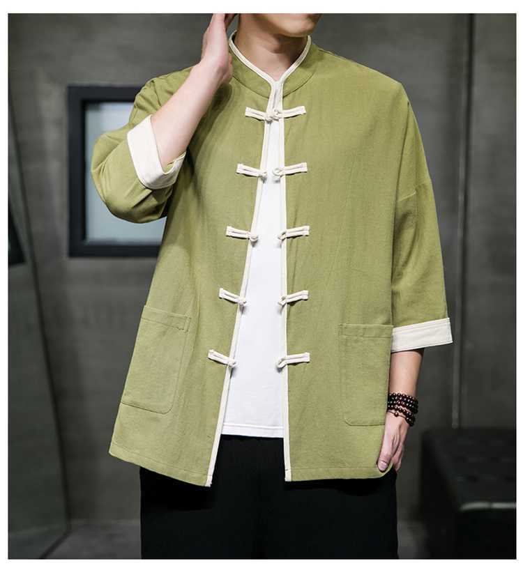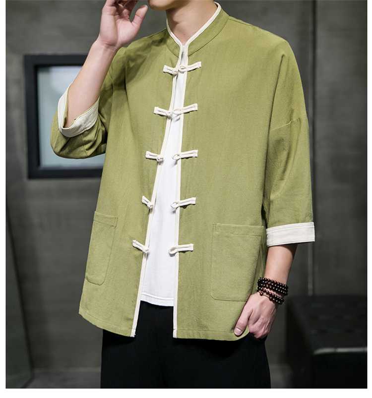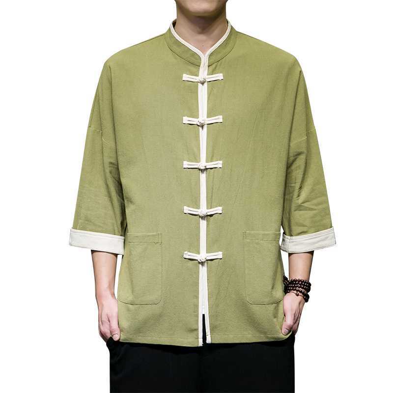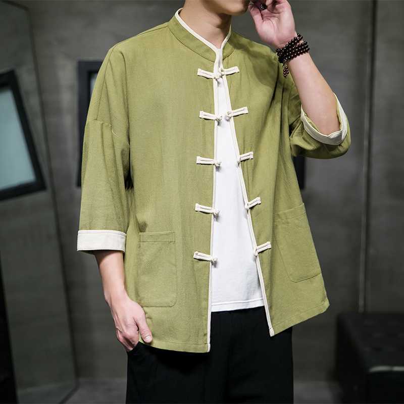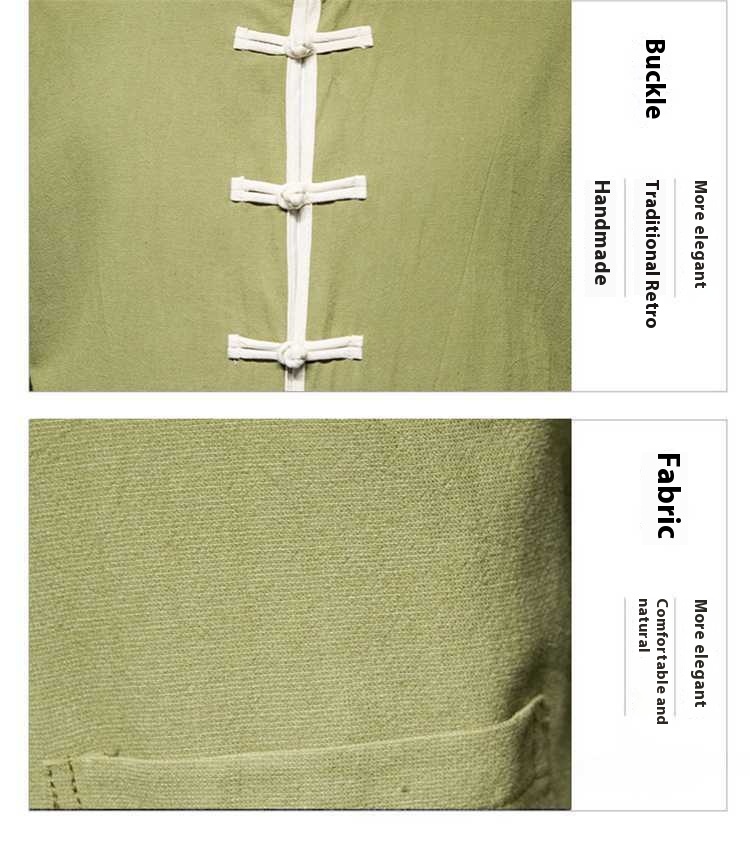 Chinese Style Summer Thin Cotton Linen Short Sleeve Shirt Chinese Button Knots Tang Suit