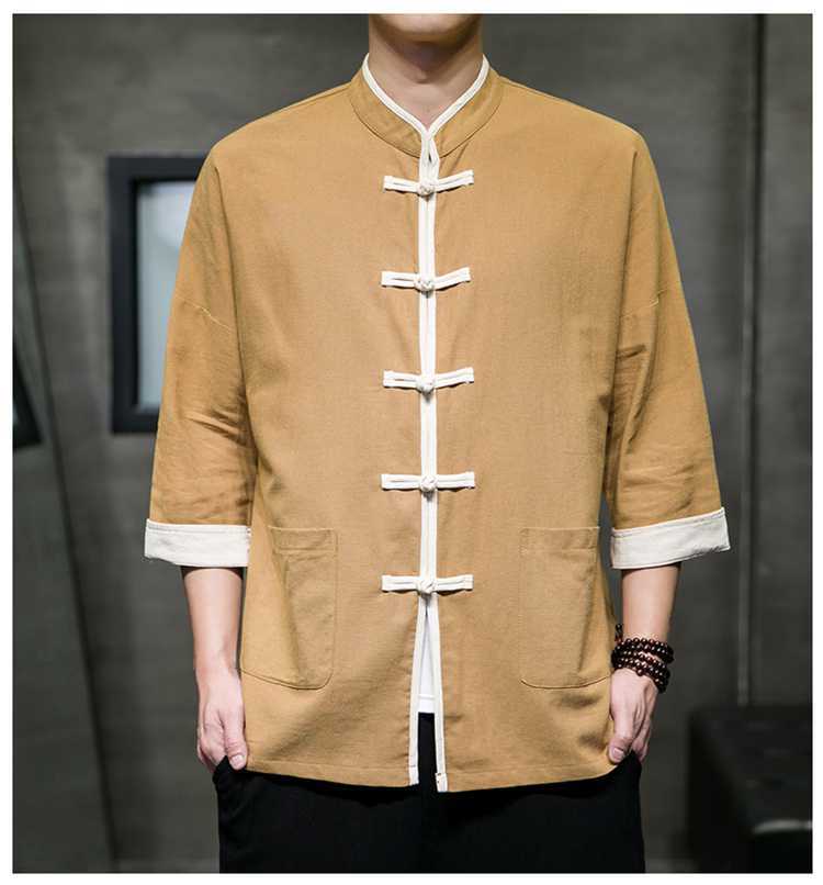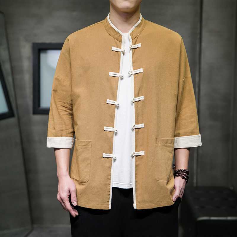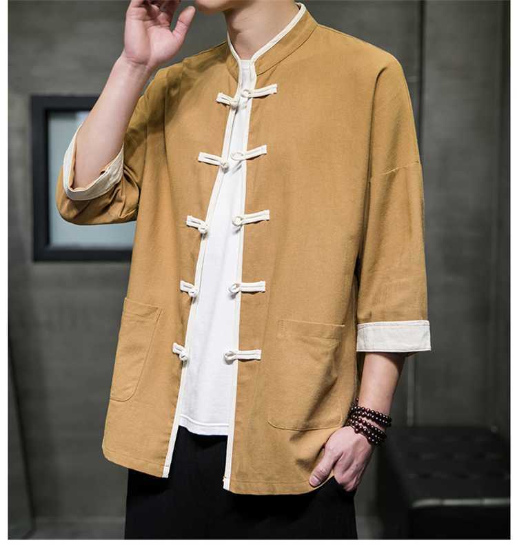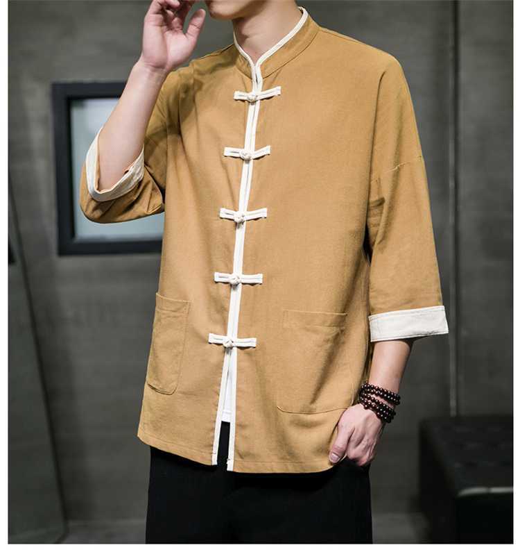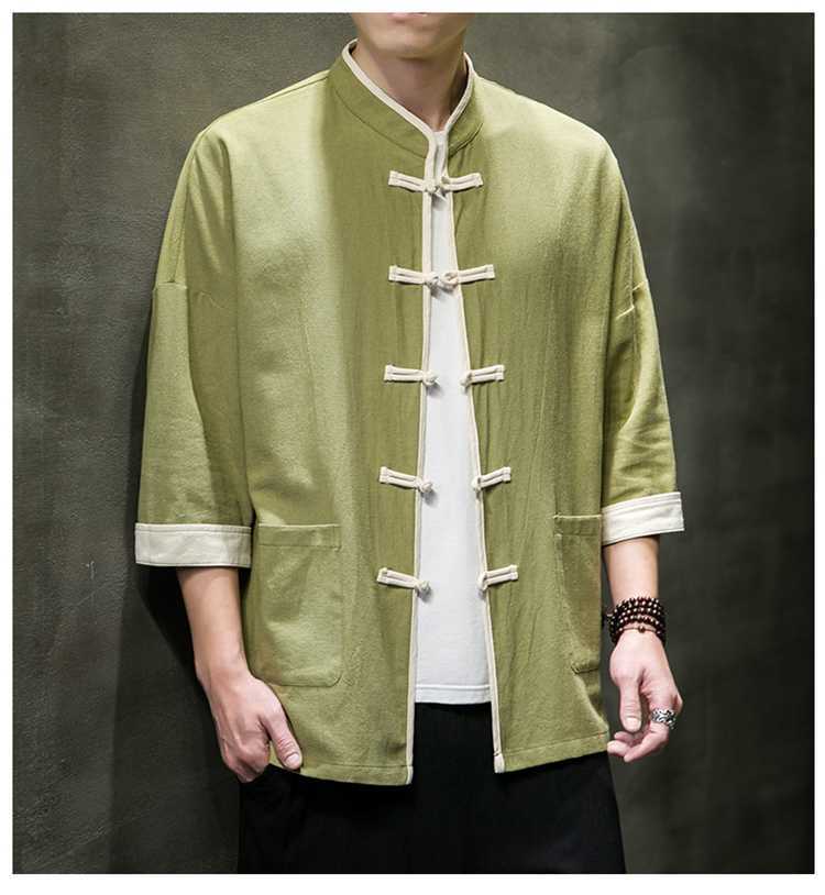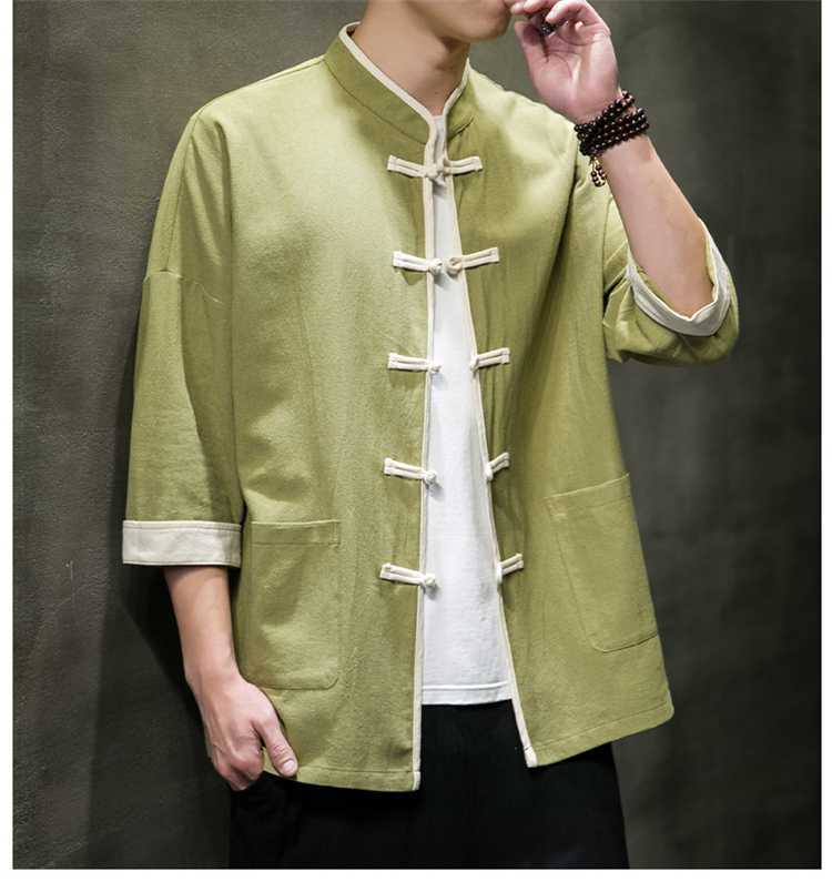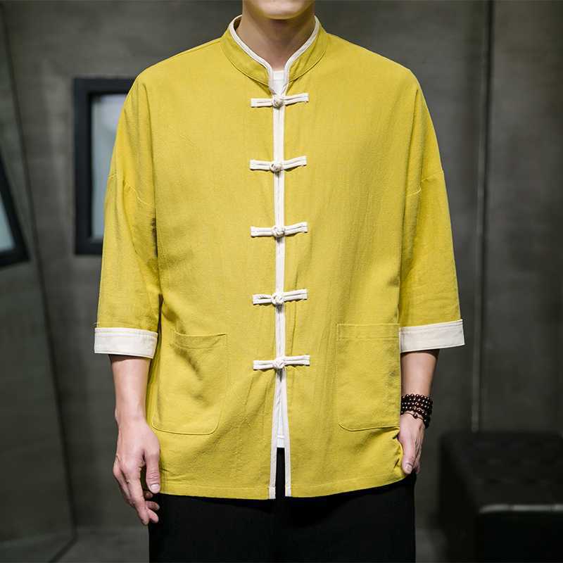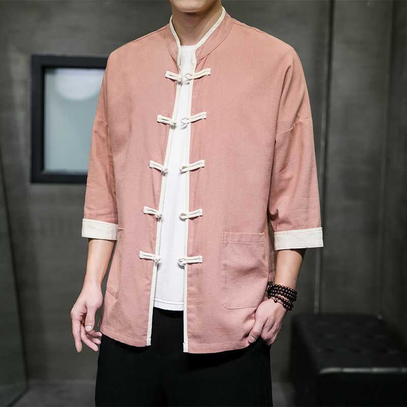 Chinese Style Summer Thin Cotton Linen Short Sleeve Shirt Chinese Button Knots Tang Suit