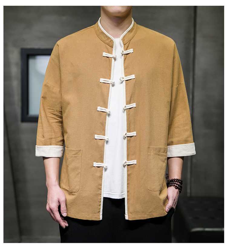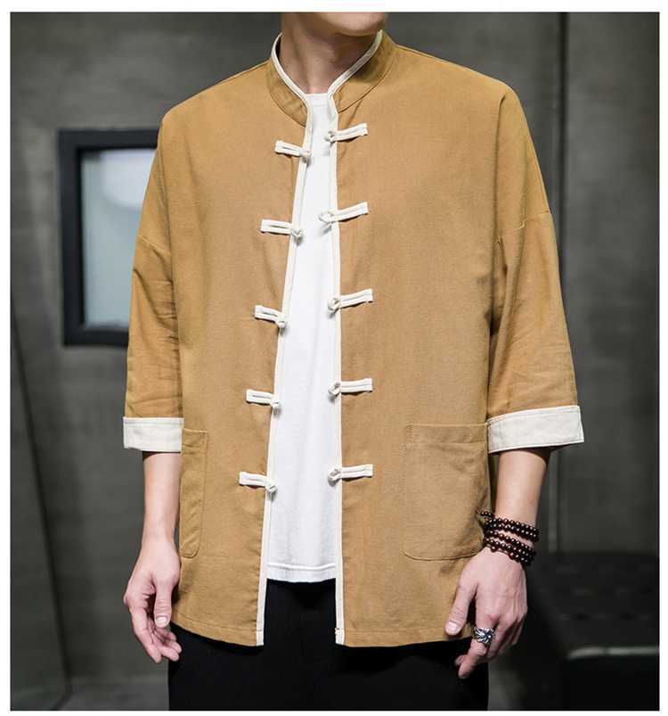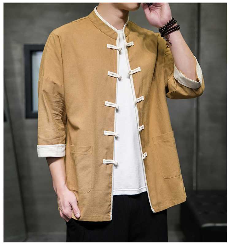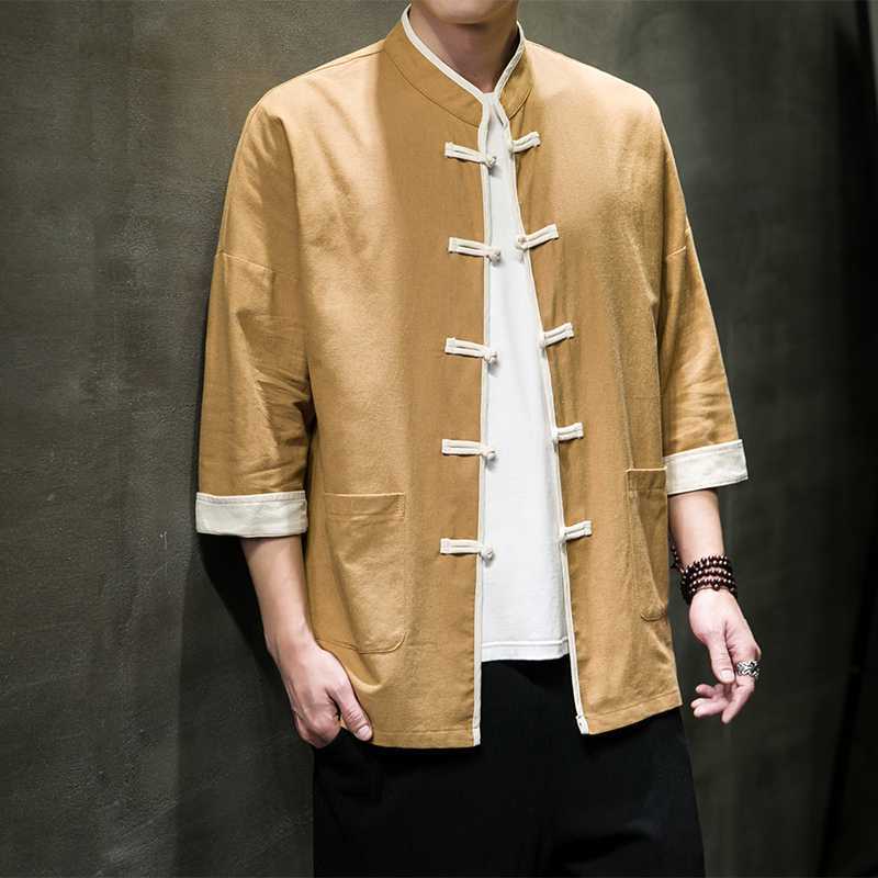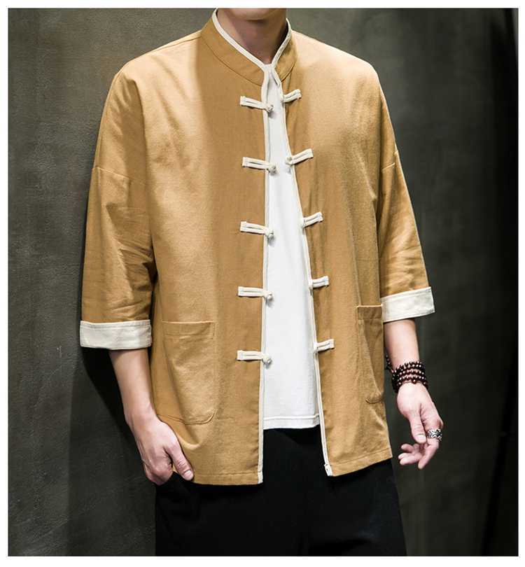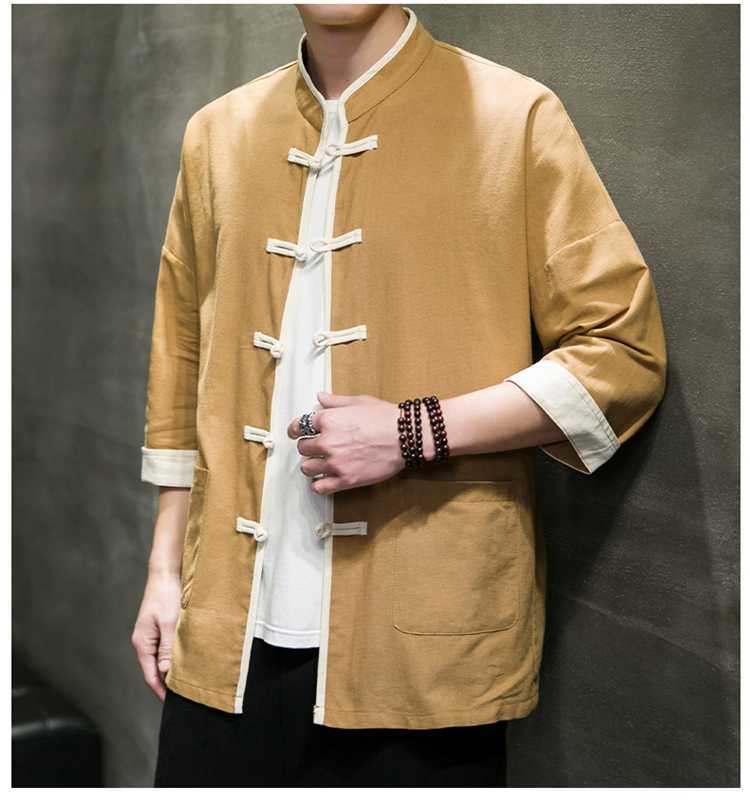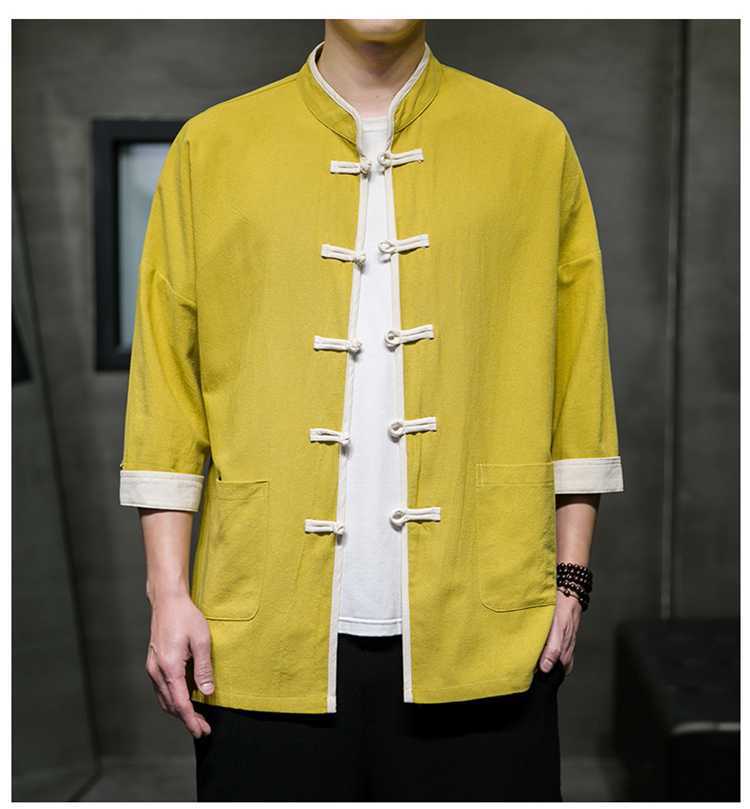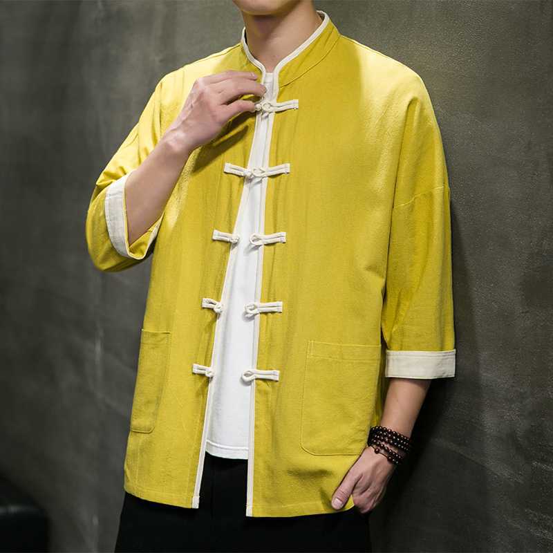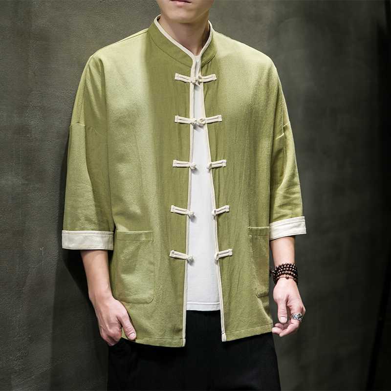 Chinese Style Summer Thin Cotton Linen Short Sleeve Shirt Chinese Button Knots Tang Suit