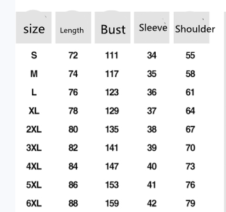 Size: S M L XL XXL 3XL 4XL 5XL 6XL