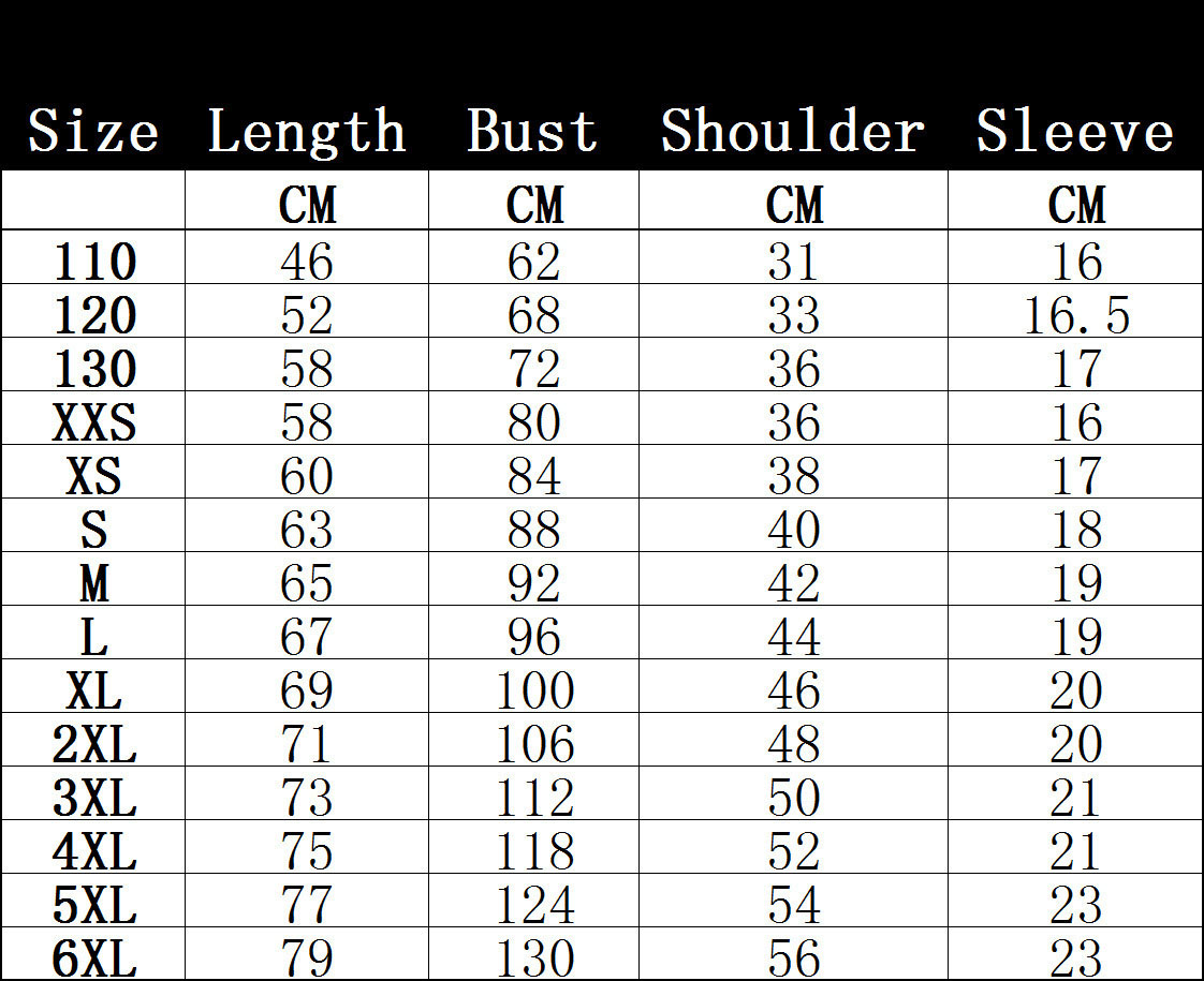 Size:XXS/XS/S/M/L/XL/XXL/3XL/4XL/5XL/6XL/100/110/120/130/140/150/160