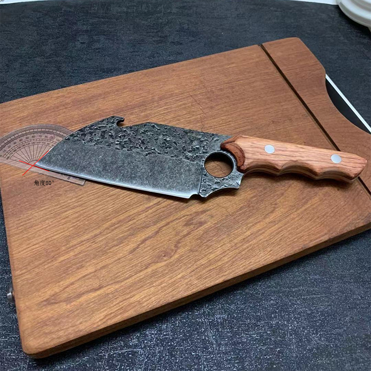 Tactical kitchen knife stone shampoo black forged outdoor knife wild cut dual-use manganese steel knife household sharp slicing knife