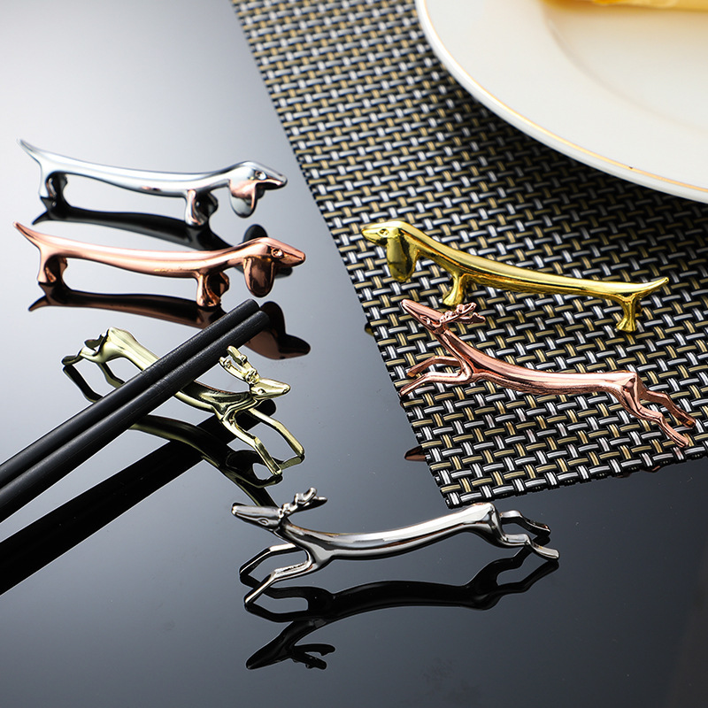 Color: 403-1 silver sausage dog chopsticks shelf, 403-2 gold sausage dog chopsticks shelf, 403-3 rose gold sausage dog chopsticks shelf, 419-1 silver wild deer chopsticks shelf, 419-2 gold wild deer chopsticks shelf, 419-3 rose gold wild deer chopsticks shelf