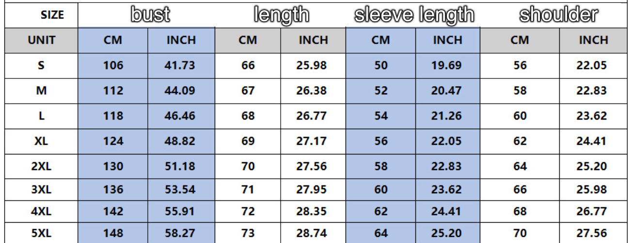 Size: S,M,L,XL,2XL,3XL,4XL,5XL