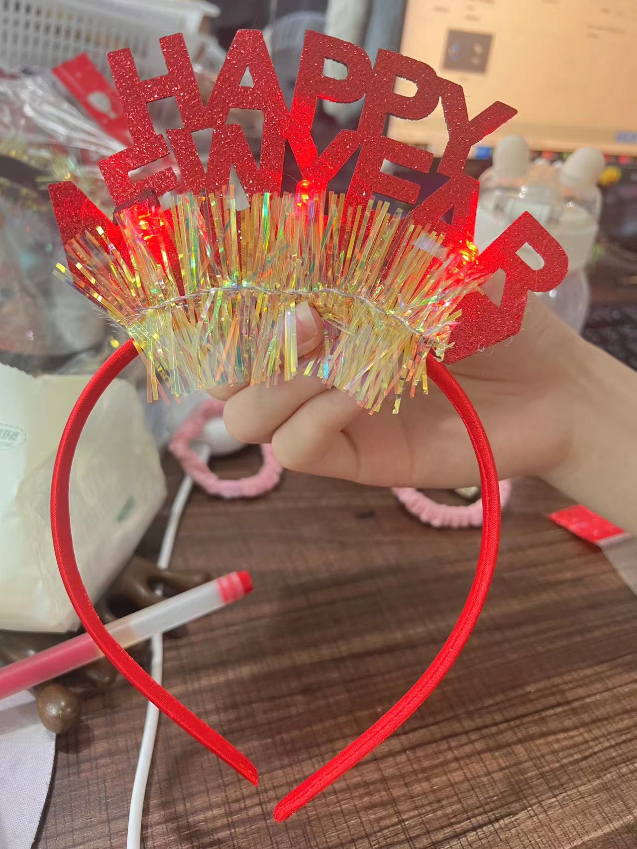 Color: 1# Red Bell letter cap, 2# Green Bell letter cap, 3# Red spring with light, 4# Green Spring with light, 5# Christmas spring headband, 6# Deerhorn red Christmas hat, 7# red velvet crooked cap, 8# Green glittering powder chain fleece hat, 9# red glittering powder chain fleece hat, 10# red diamond wings fleece hat, 11# green diamond wings fleece hat, 12# red belt fleece hat, 13# Green Belt fleece hat, 14# green glitter gold silk fleece hat, 15# Red Yellow Green bright silk belt fleece hat, 16# red White Shiner belt fleece hat, 17# Red Green bright silk belt feather Green, 18# red glittering powder letter headband with light, 19 # m silver streak gold silk female headband, 20# gold glittering powder letter headband, 21# silver glitter letter headband, 22# Green coarse tree five-pointed star rain silk head buckle, 23# red coarse tree five-pointed star rain silk head buckle, 24# Red adult glitter antlers headband, 25# gold adult glitter antlers headband, 26# Red Crown feather head buckle, 27# Golden Crown feather head buckle, 28# red binaural crown, 29# Golden binaural crown, 30# brown antlers, white leather wool, 31# red antlers white leather wool, 32# red white leather gross coarse grain antlers, 33# Golden Antlers feathers, 34# red with golden Christmas tree, 35# red white leather Bell letters, 36# Green White Feather Bell letters, 37# red ribbon five-pointed star feather plush hat, 38 # hoho ribbon, 39# Red Antler ribbon, 40# Red Antler feather, 41# Red Crown glitter headband, 42# green crown glitter headband, 43# green crown Golden Christmas tree, 44# red velvet lined Christmas tree, 45# red glitter headband letters, 46# silver glitter headband letters, 47# adult large antlers, 48 # m red with golden letters without lights, 49# green flash powder headband with golden letters