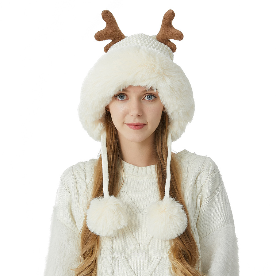 Color: antlers pairs of fur ball knitted hat Black, antlers pairs of fur ball knitted hat beige, antlers pairs of fur ball knitted hat White, antlers pairs of fur ball knitted hat khaki, antlers pairs of fur ball knitted hat gray, antlers pairs of wool ball knitted hat pink