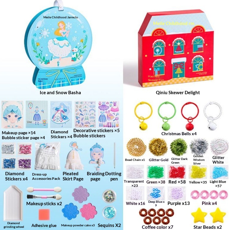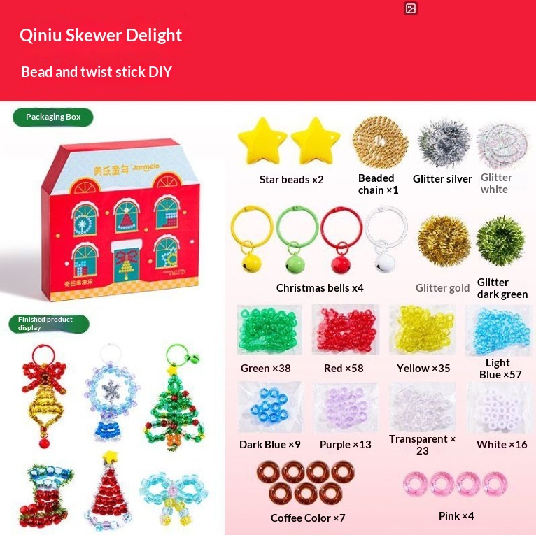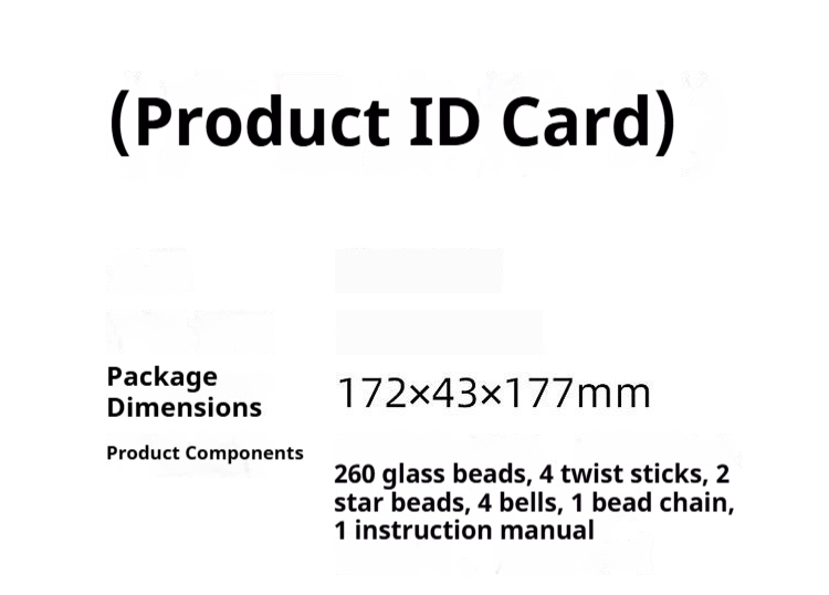260* glass beads, 4* pipe cleaners, 2* star beads, 4* bells, 1* beaded chain, 1 *instruction manual