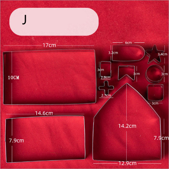 J: [Labeling] 10 sets of 3D gingerbread house mould