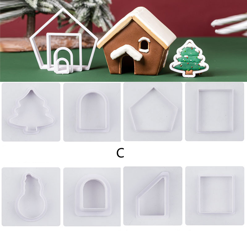 C: Christmas tree snowman house fondant cake mold set (8-piece set) gingerbread house,