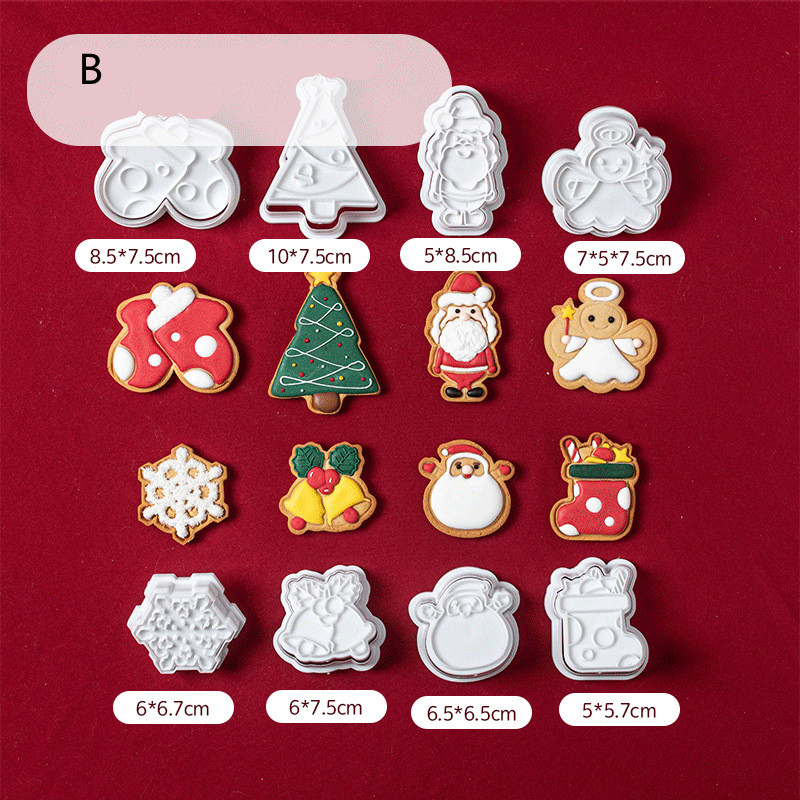 B: 8-piece Christmas biscuit hand-press mold set (B),