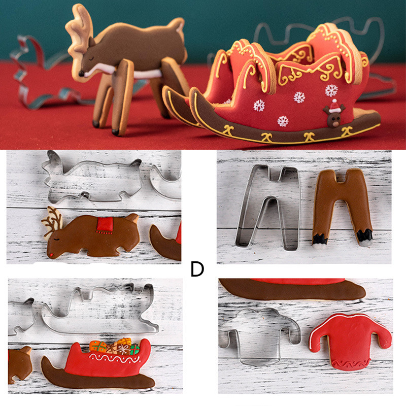 D: 4 pieces of Christmas elk sleigh cookie mold,