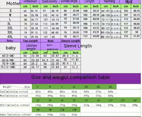 Suitable height: Father s size, Father M size, Father L, father XL, father 2XL, father 3XL, father 4XL, Mother S, Mother M, mother size L, mother XL, mom 2XL, mom 3XL, mom 4XL, Baby 6, Baby 9, baby 12, baby 18, children 2, children 3, children 4, children 5, children 6, children 8, children 10, children 12, children 14, Dog S, Dog M, dog L, dog XL