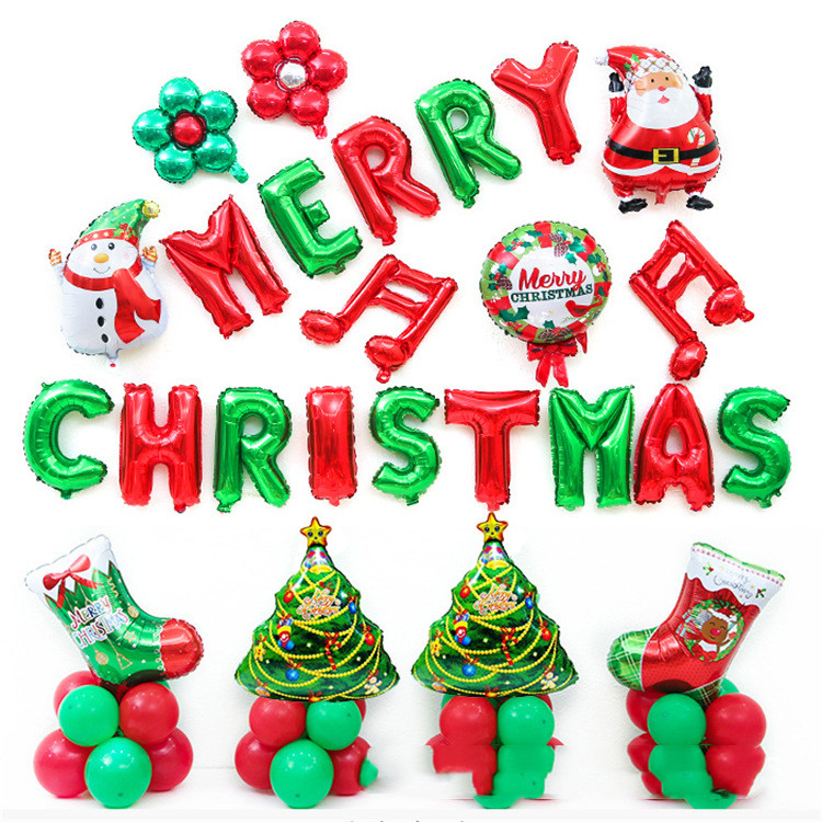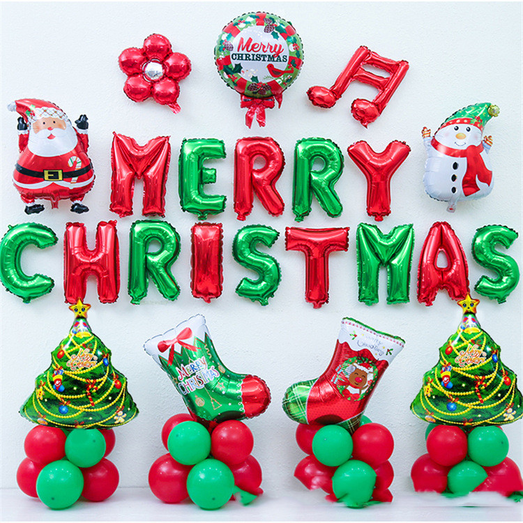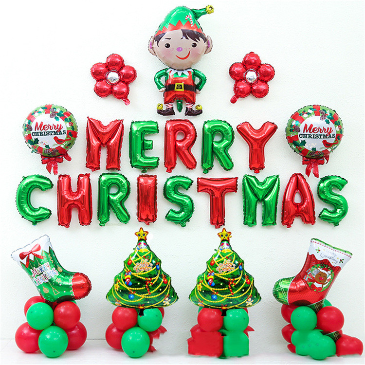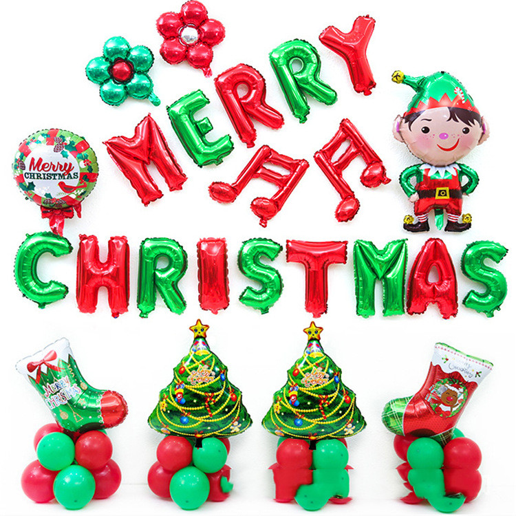 ①A set of 16-inch red and green MERRY CHRISTMAS letter balloons;
