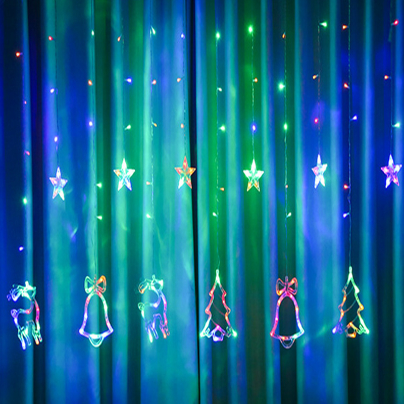 A string of lights has 3 stars, 3 big moons, and 6 small stars. The main light cord is 2.5 meters long and the extension cord is 2 meters. The rotary controller can adjust 8 clock mode.