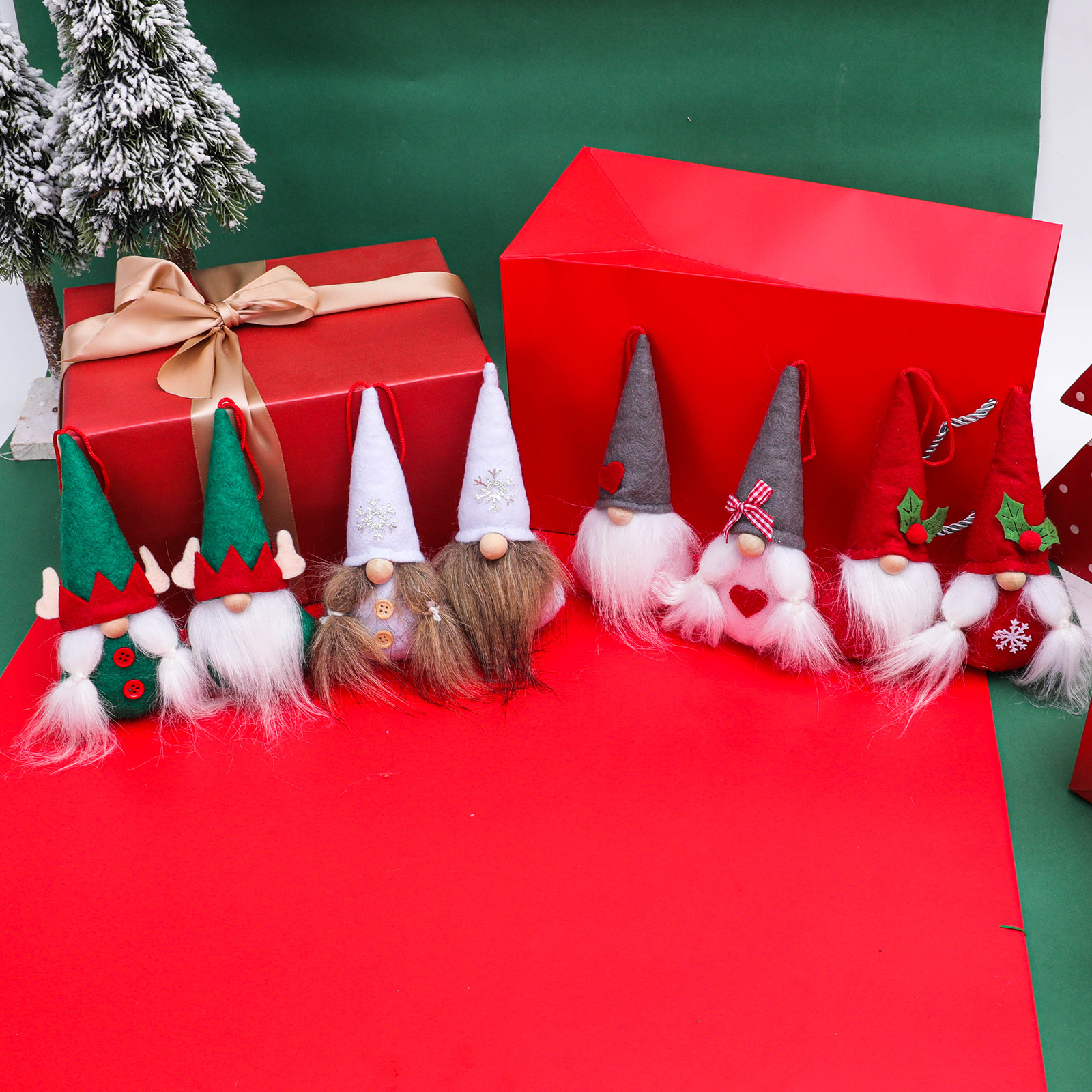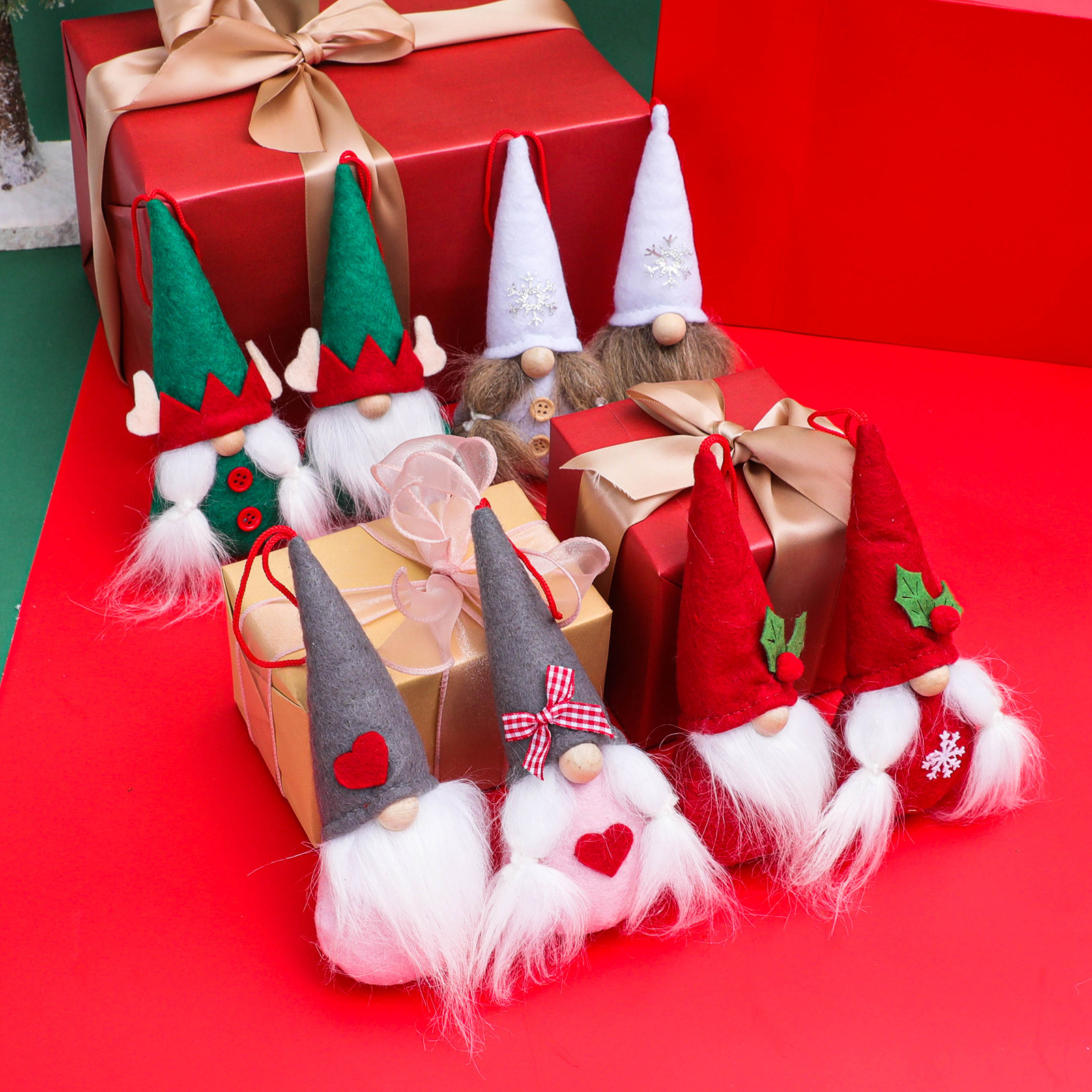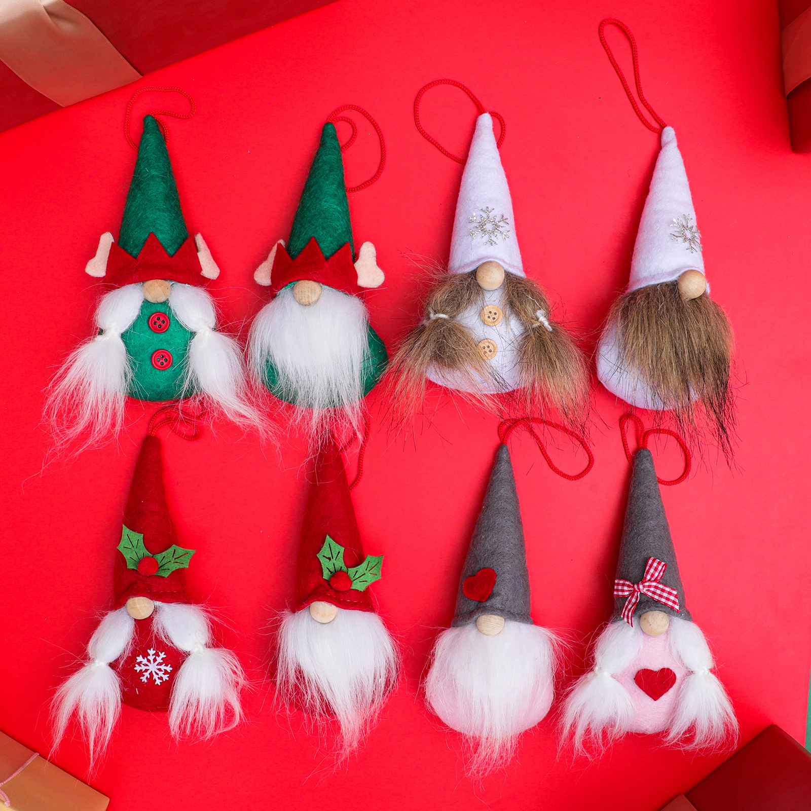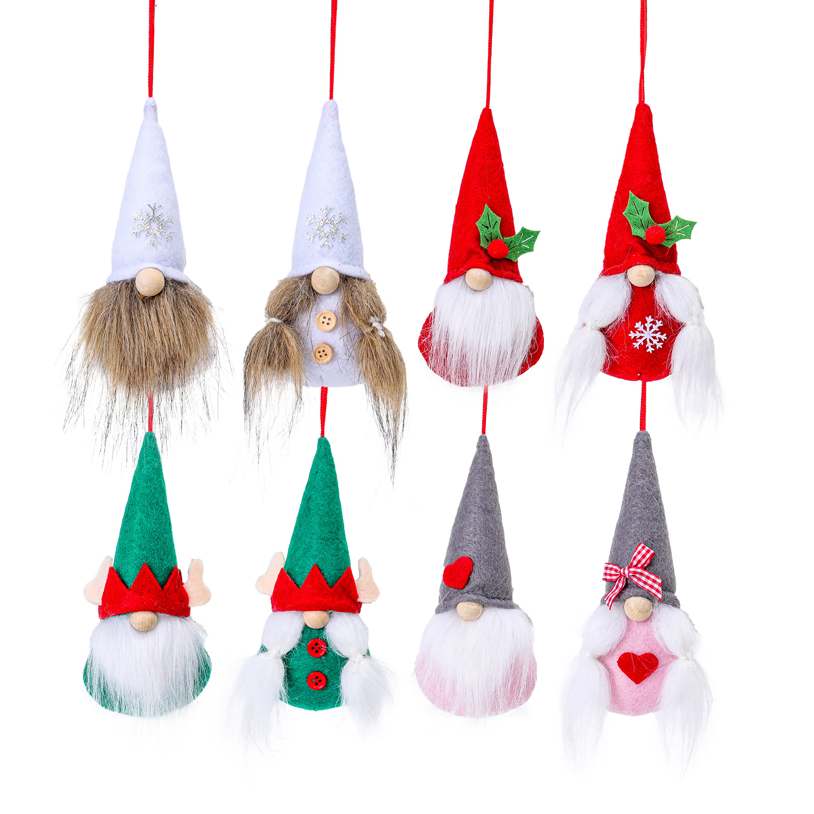 Specifications: white snowflake faceless two-piece set pendant, Red Green Leaf faceless two-piece set pendant, green elf two-piece set pendant, gray with heart two-piece set pendant
