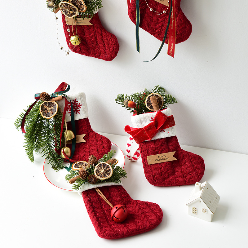 Color: Snowman decorative socks/83g, red bow decorative socks/43G, gold bell decorative socks/64g, red bell decorative socks/62G, double bell decorative socks/72g, red snowflake Christmas stockings
