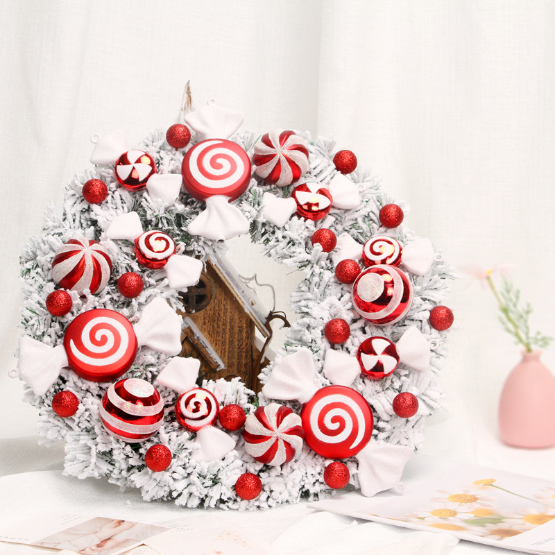 Product features: flocking Christmas wreath, true to life, candy and Christmas