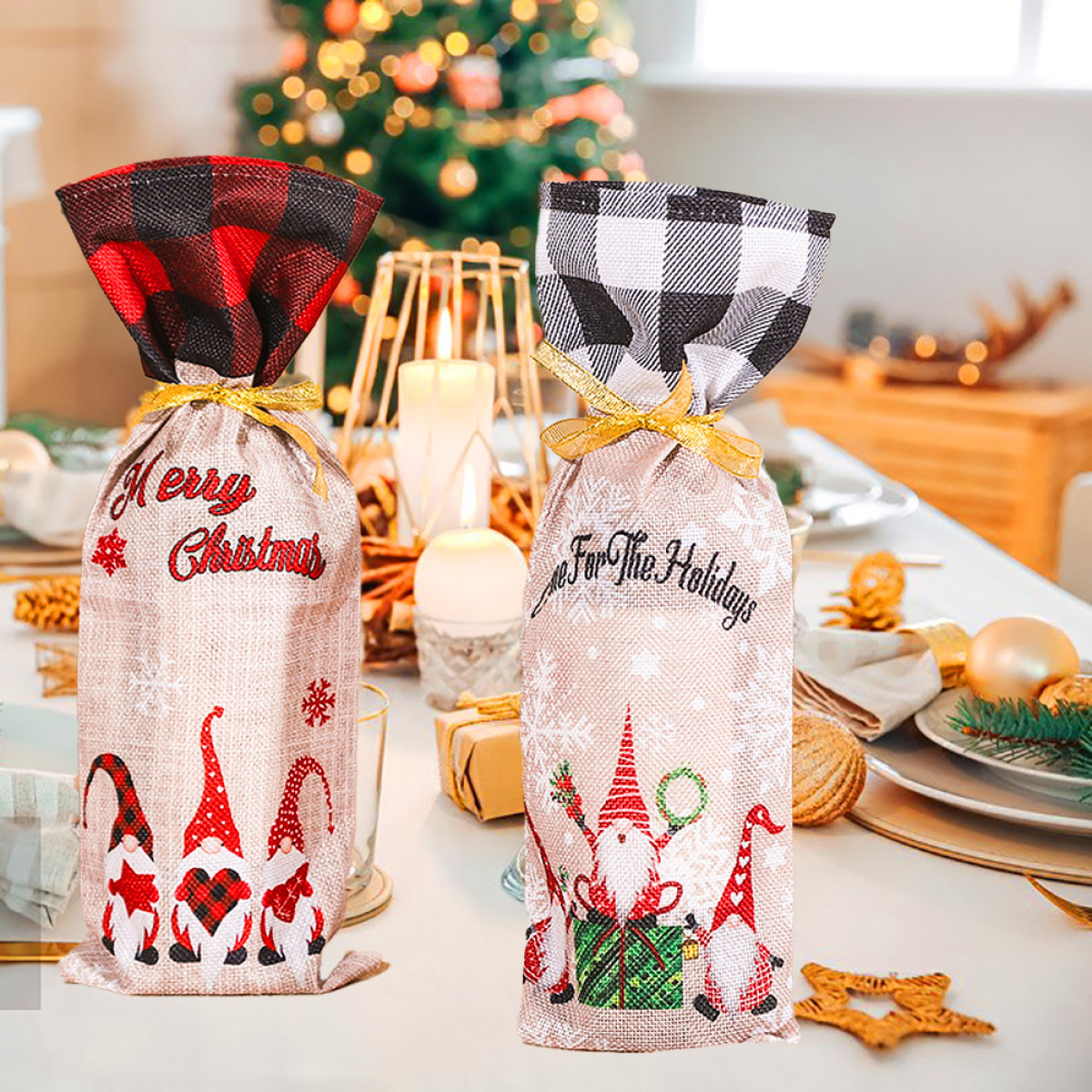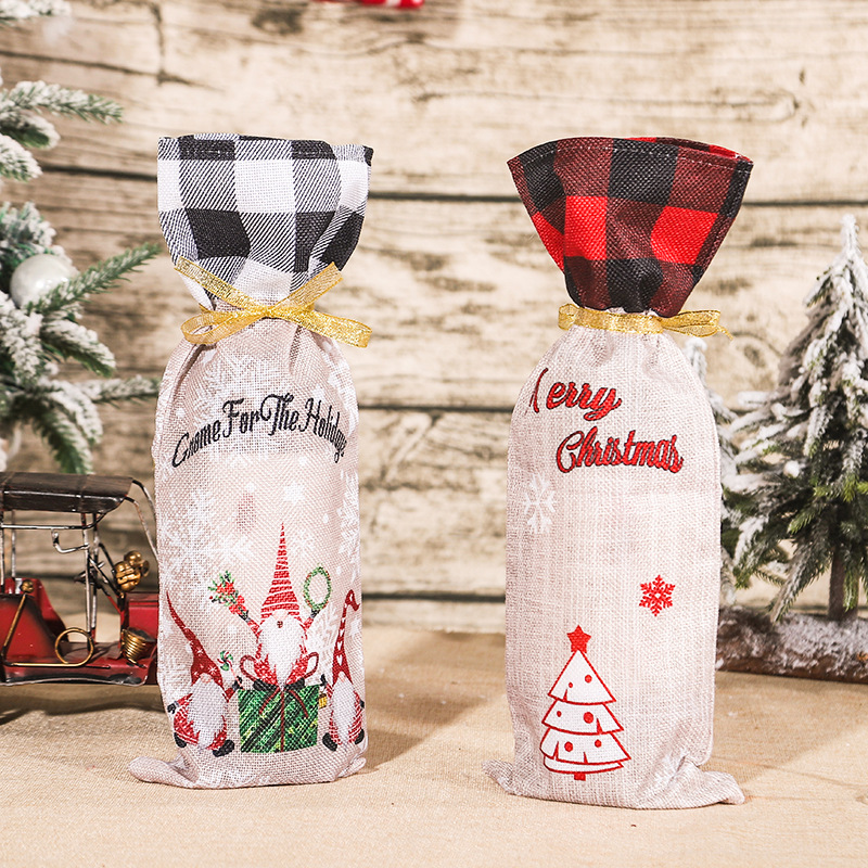 Specifications: G-JT139 red and black plaid wine sleeve, G-JT138 black and white plaid wine sleeve
